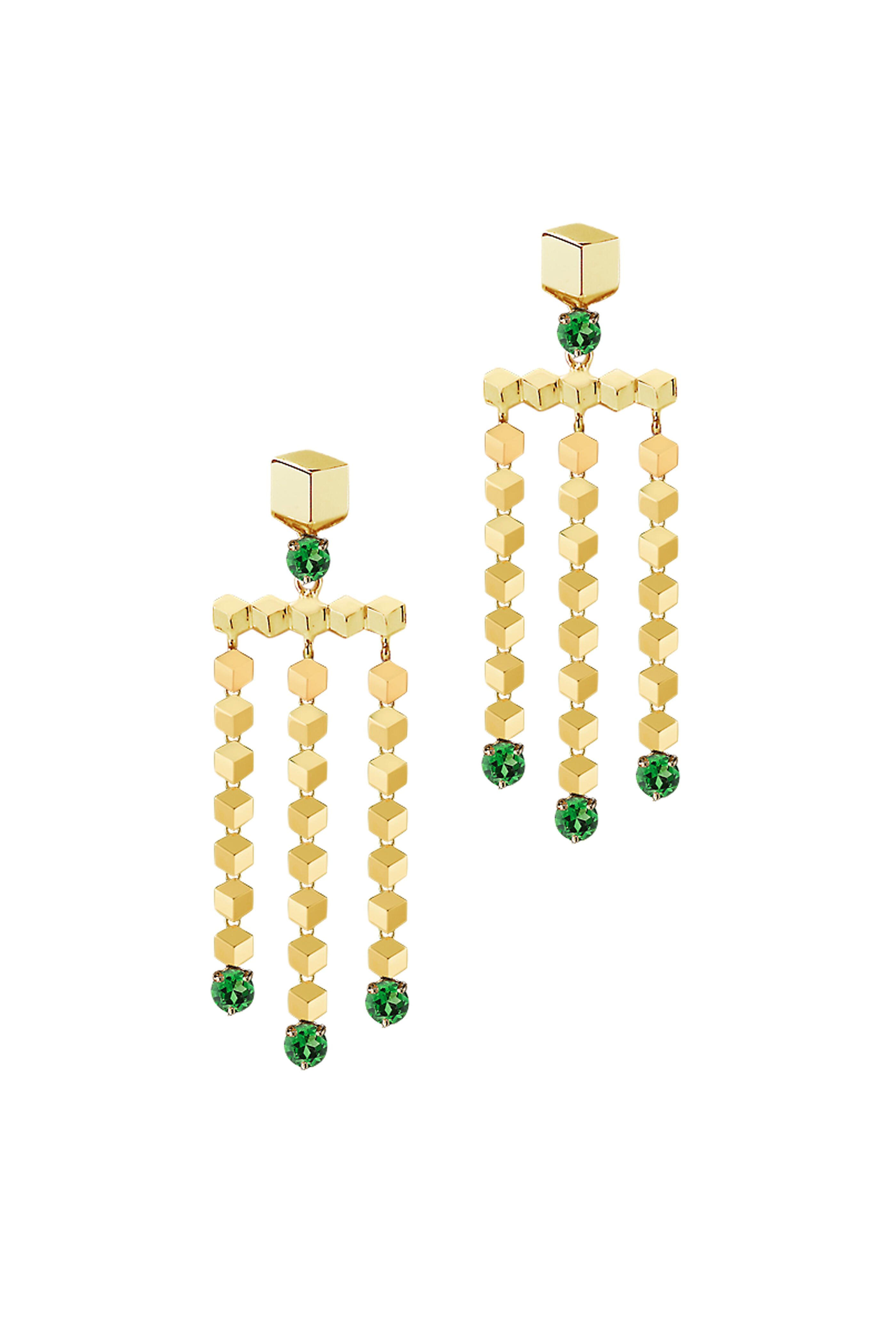 From the Brilliante collection. 18k yellow gold. 2.22cts green tsavorite gemstones. Triple strand drop earrings.