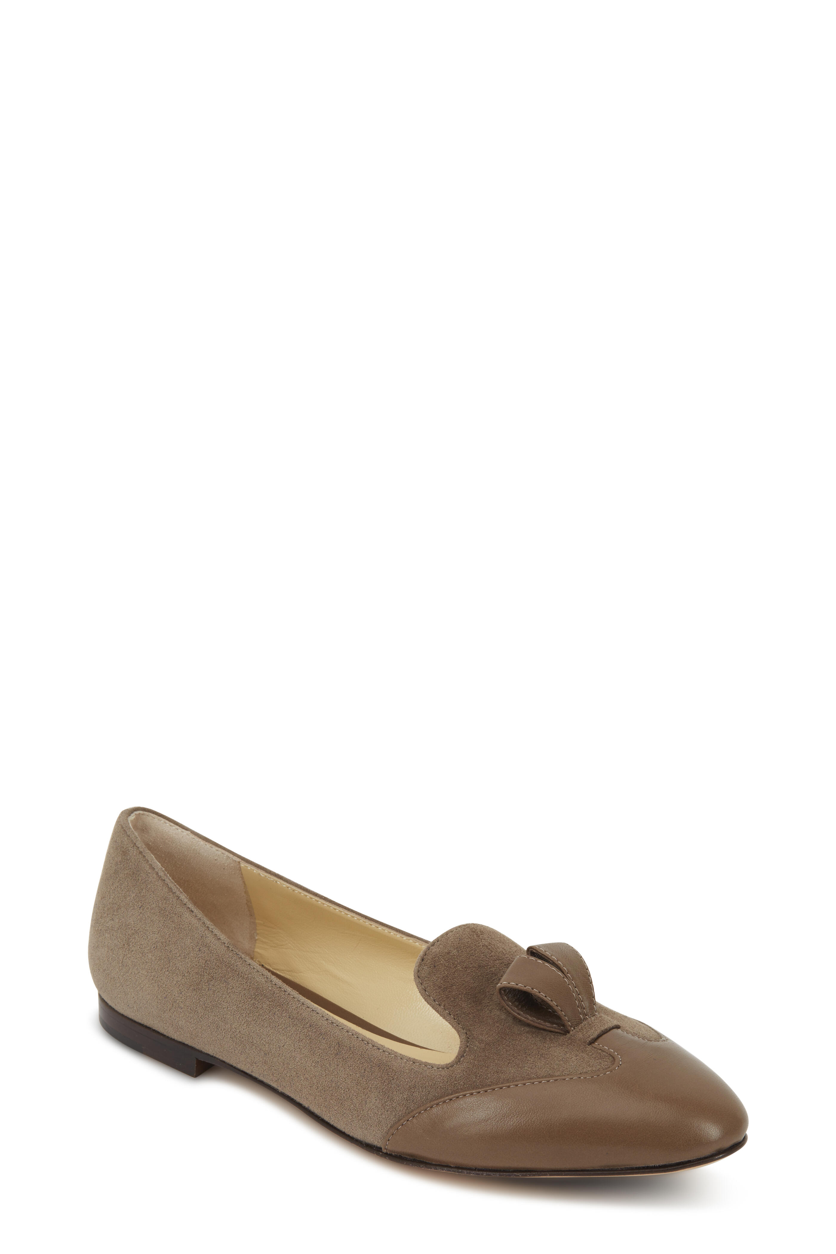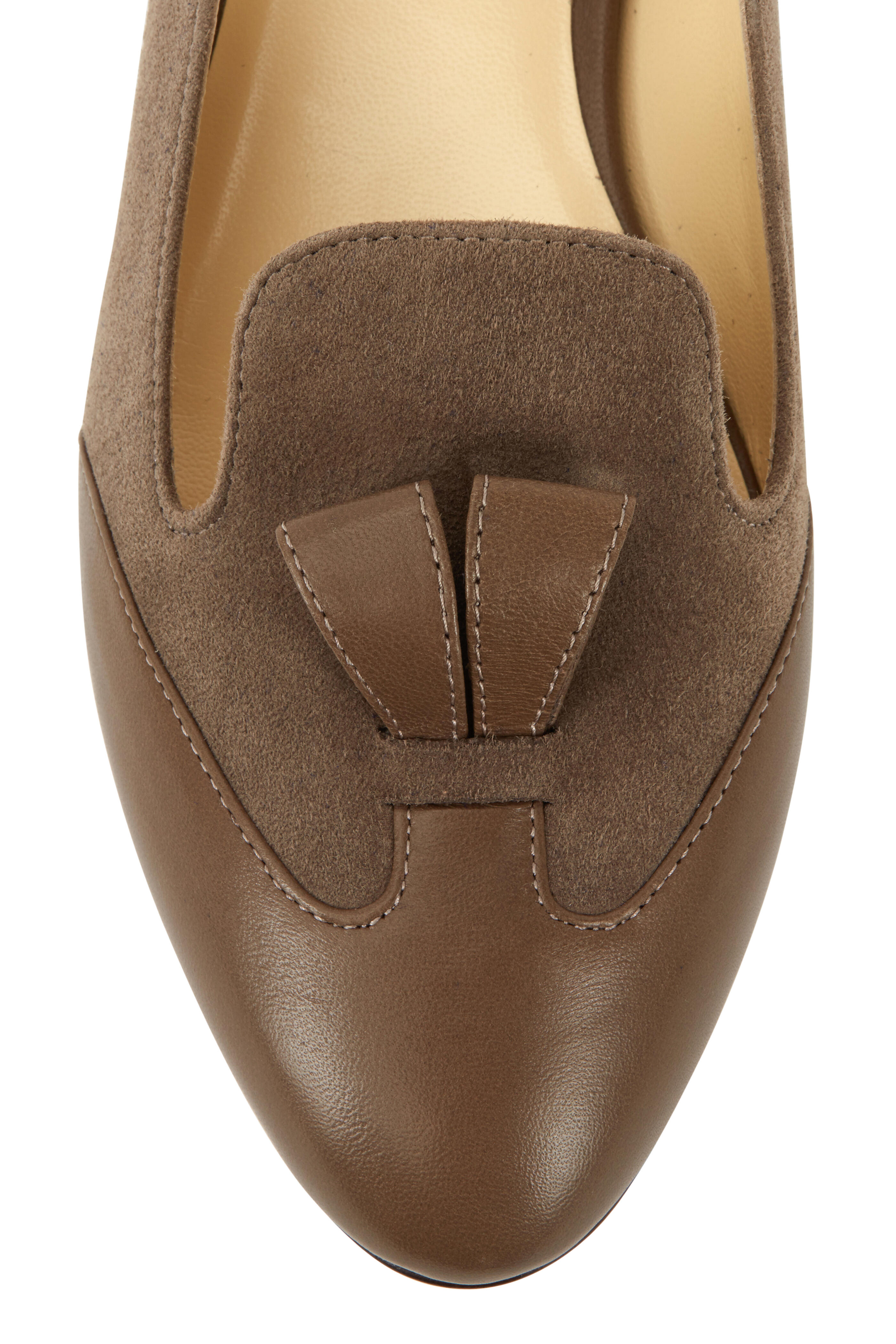 Calf leather and suede upper. Almond toe. Origami fold detail on vamp. Leather lining and insole. Leather sole with rubber insert. Handmade in Italy. Heel measurement: 10mm (⅜").