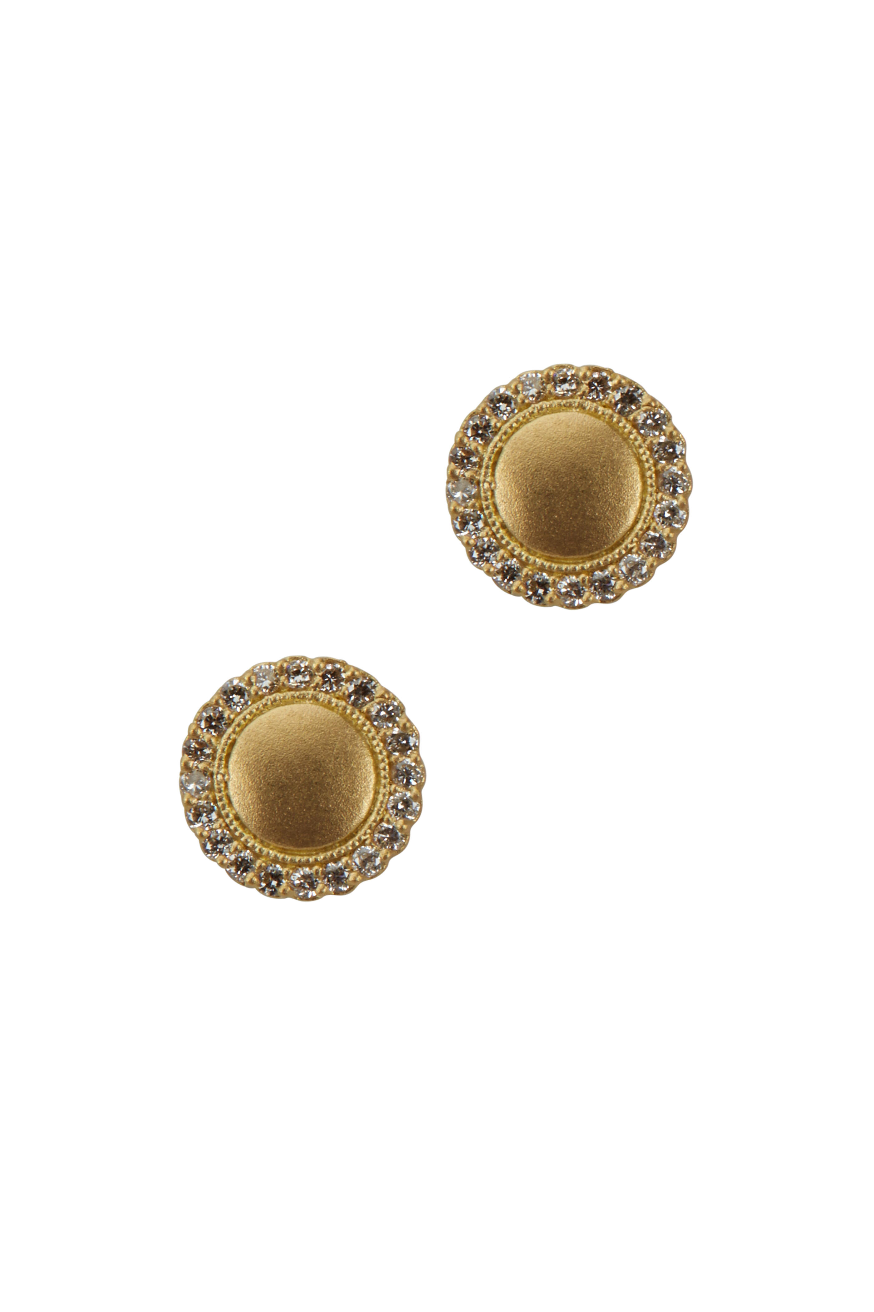 Yellow Gold Scalloped Edge Diamond Stud Earrings