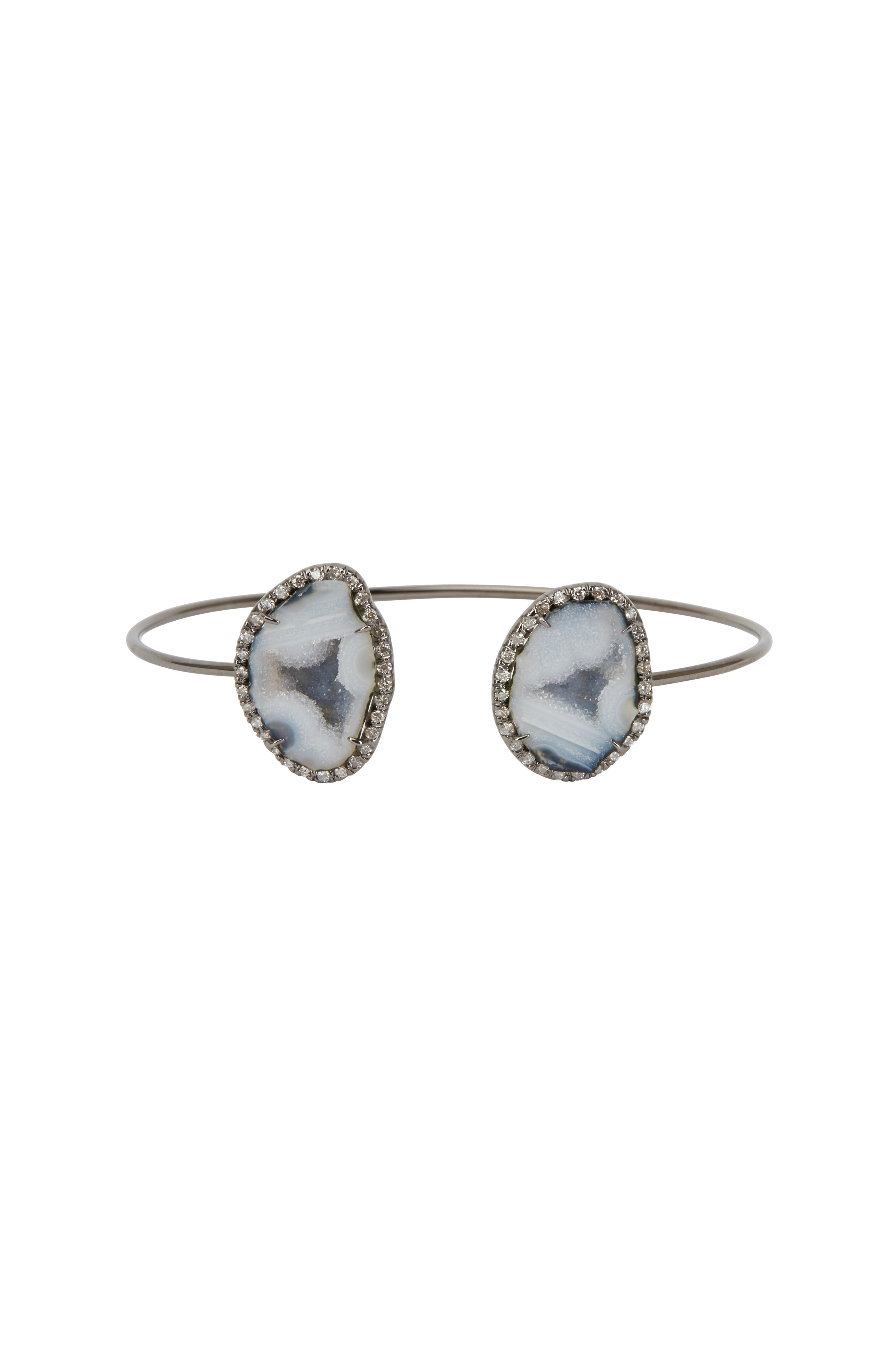 18k white gold & black rhodium. (2) light blue geodes. 0.85cts diamonds. Cuff bracelet.