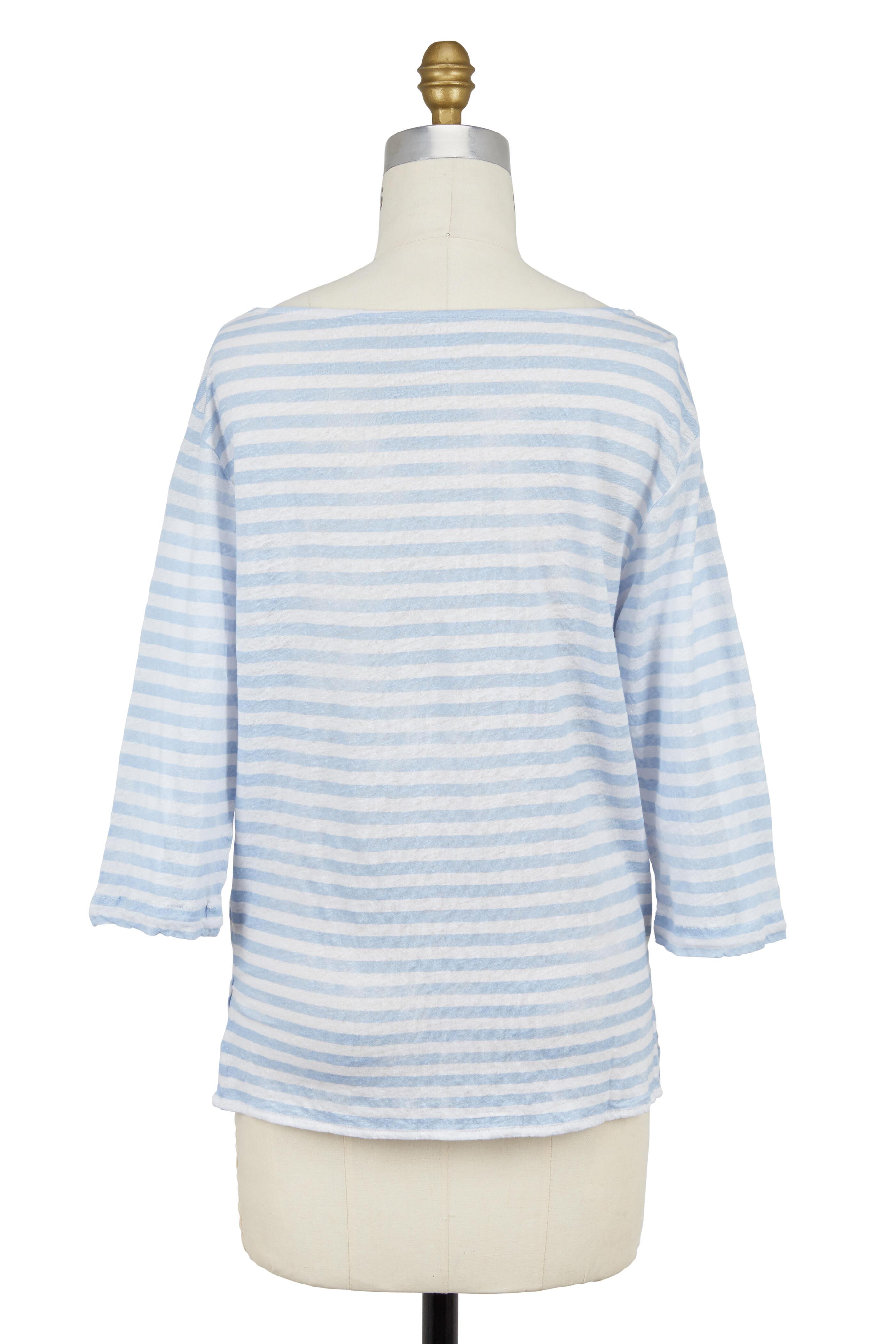 • Majestic - Light Blue Striped Linen Boatneck T-Shirt