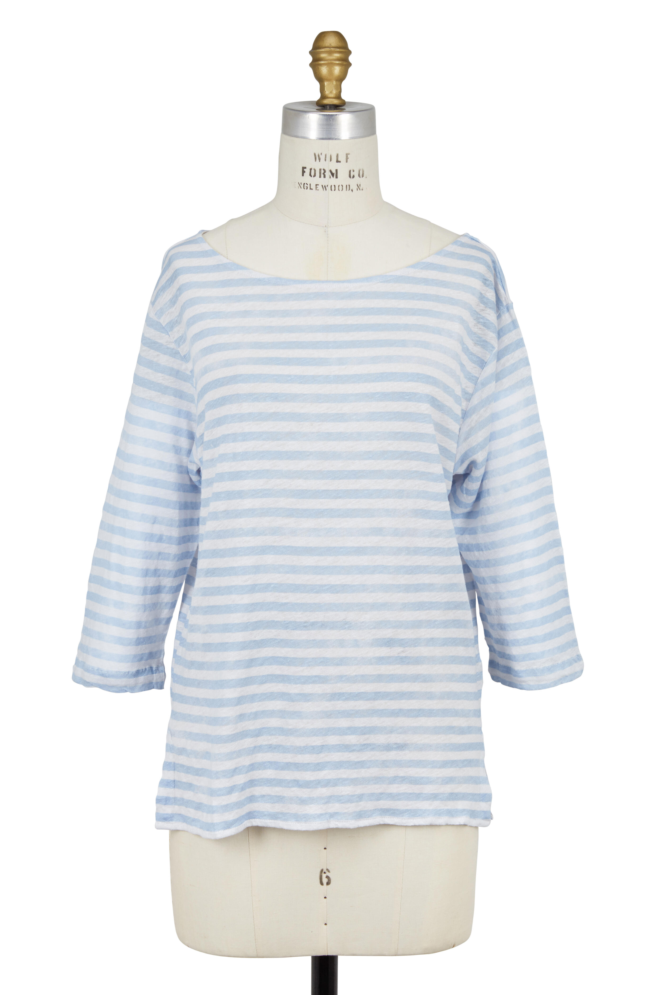 Light Blue Striped Linen Boatneck T-Shirt