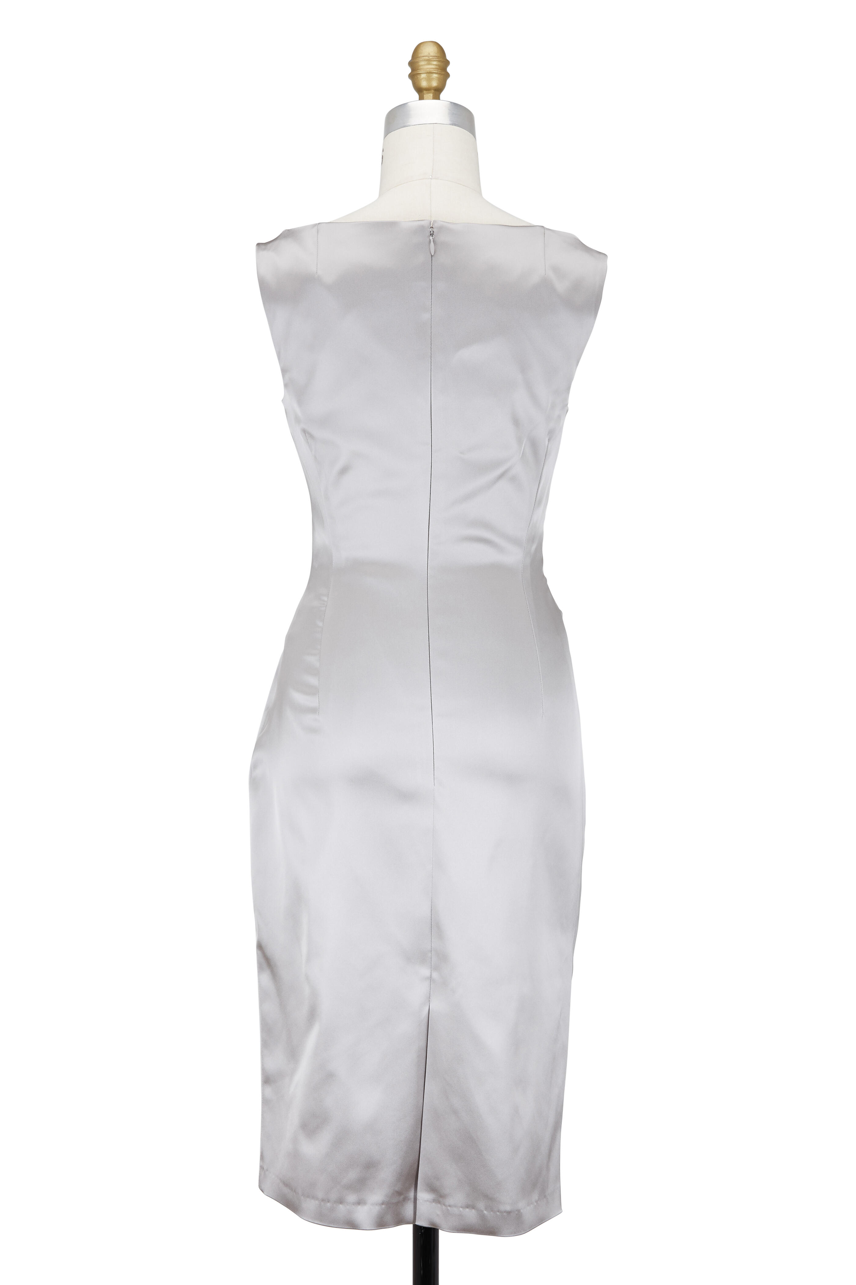 Silver Satin Side-Ruched Fitted Cocktail Dress