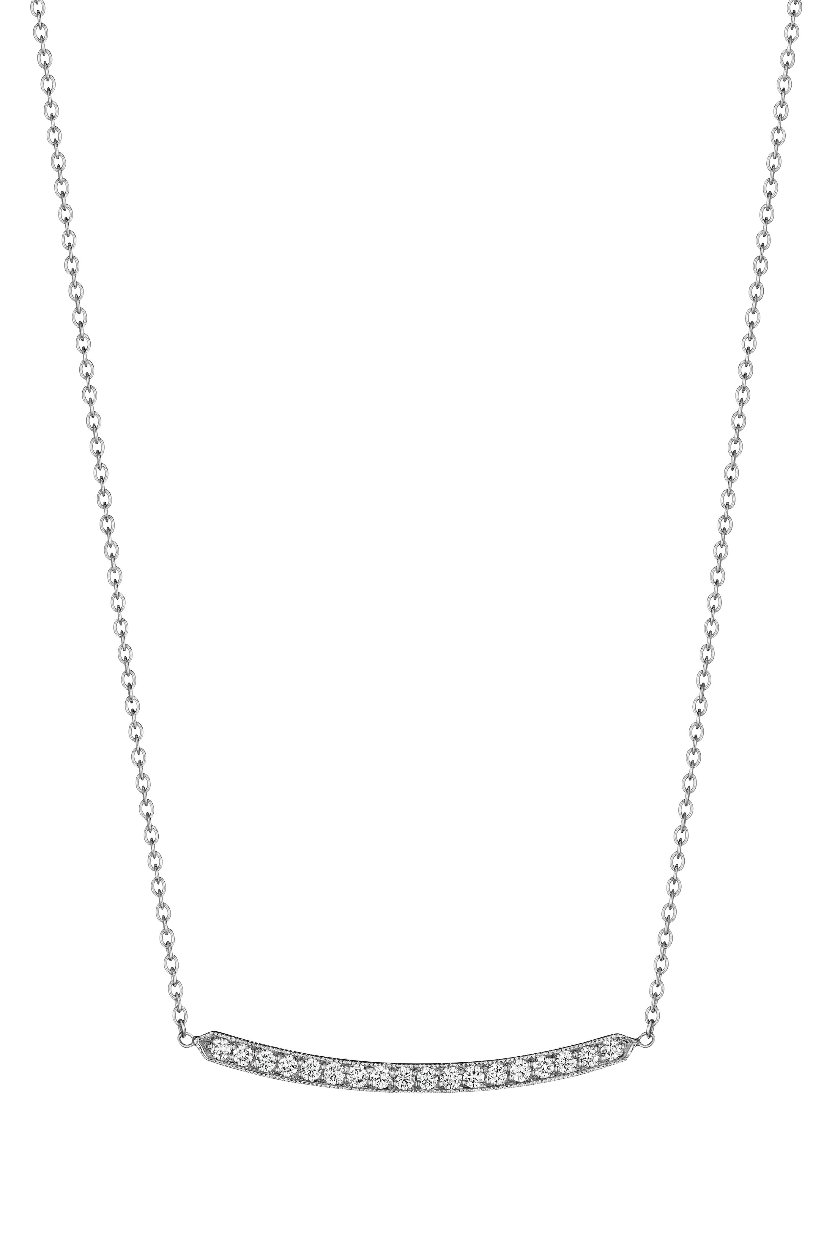 18k white gold. 0.54cts pavé-set white diamonds. 18" plain chain.