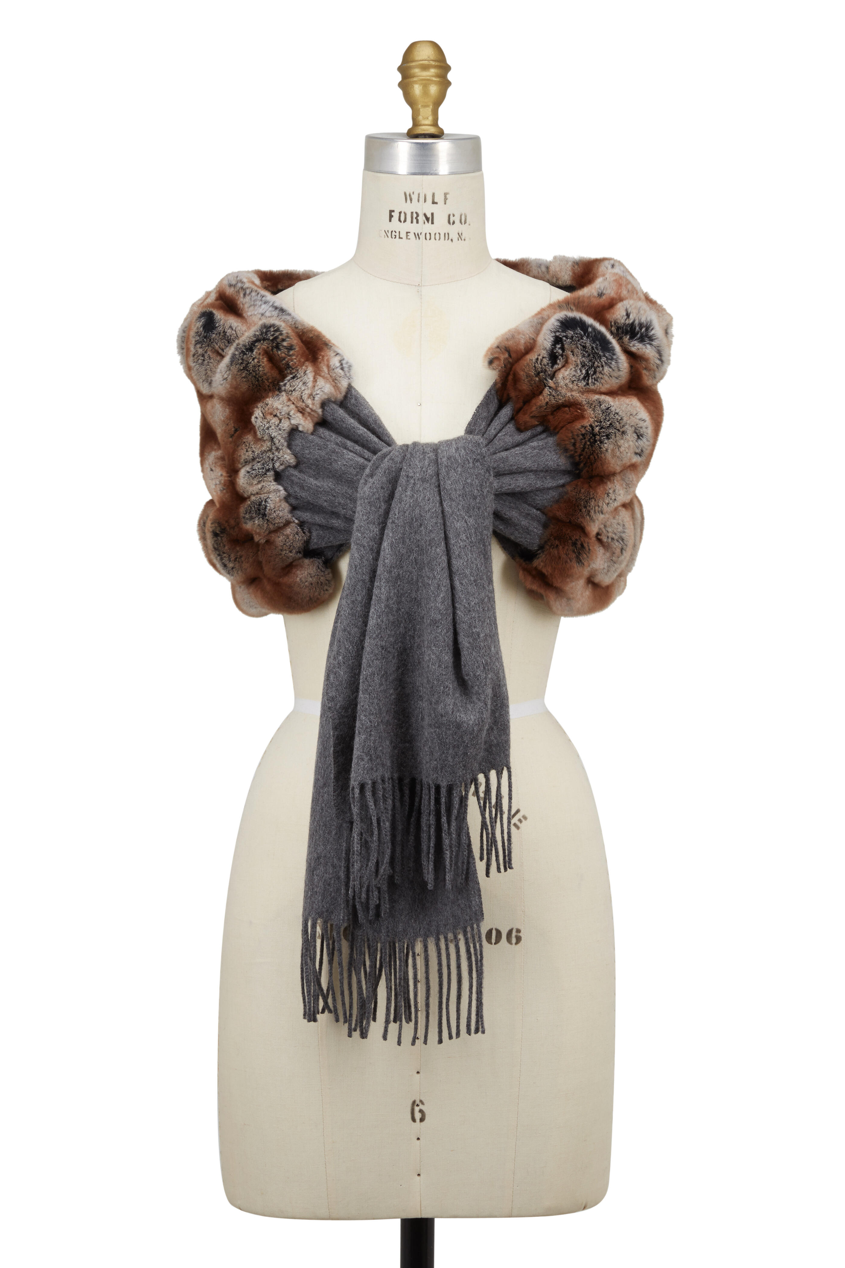 Cashmere blend with rex orylag fur detail. Fringe.