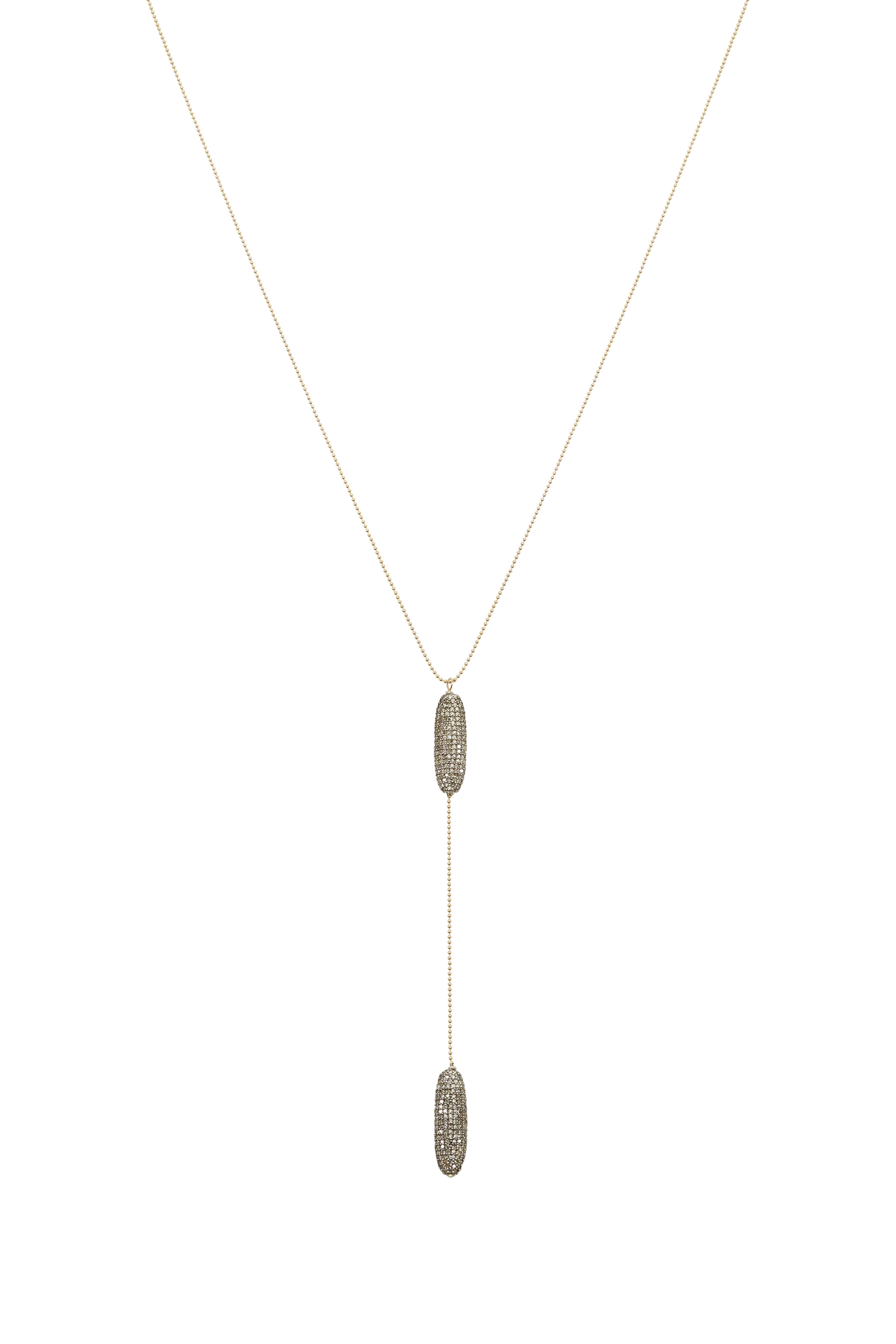 Yellow Gold Double Diamond Lariat Bead Necklace