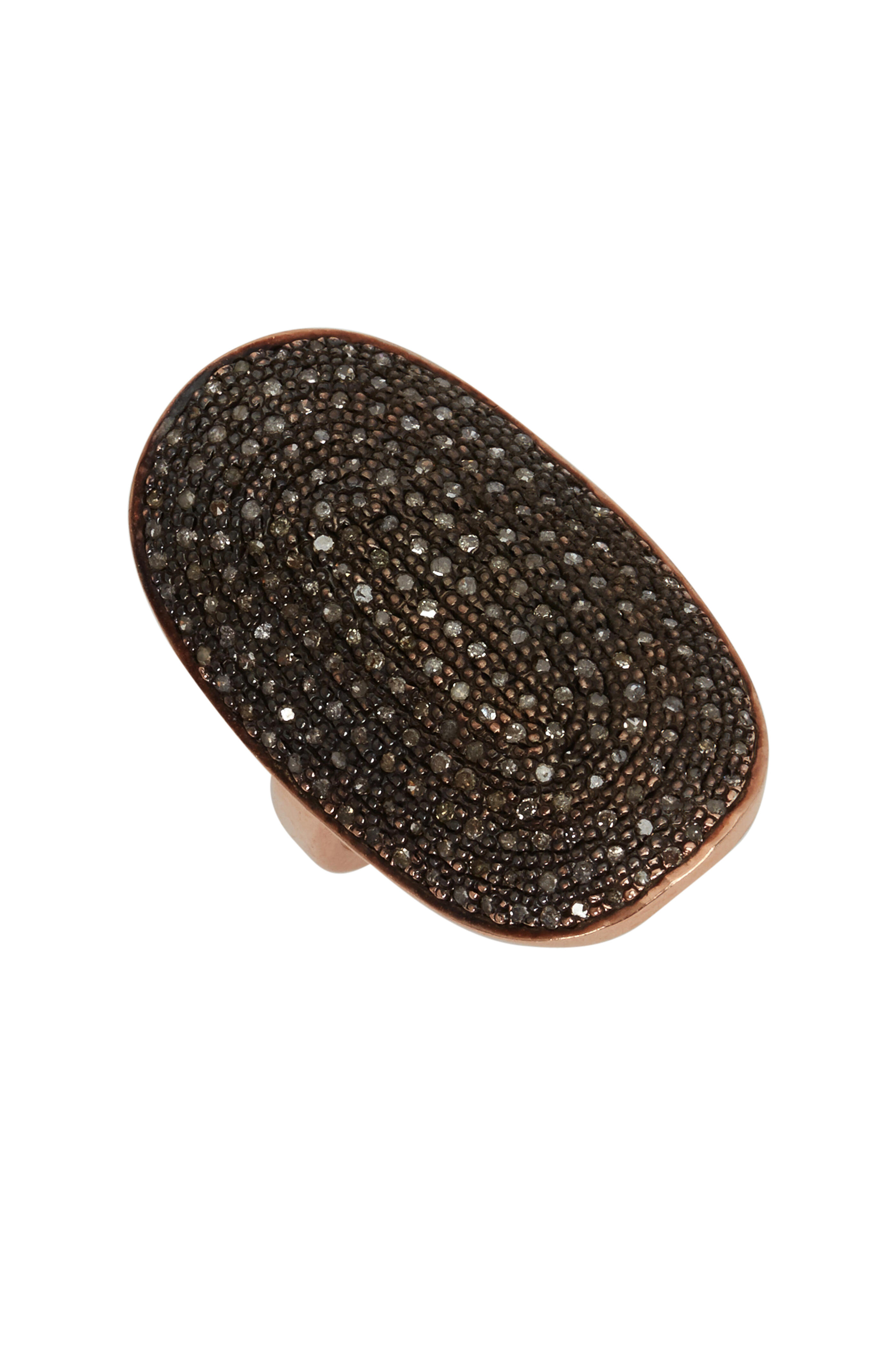 Rose gold plate. Pavé-set diamonds. Large curved ring.