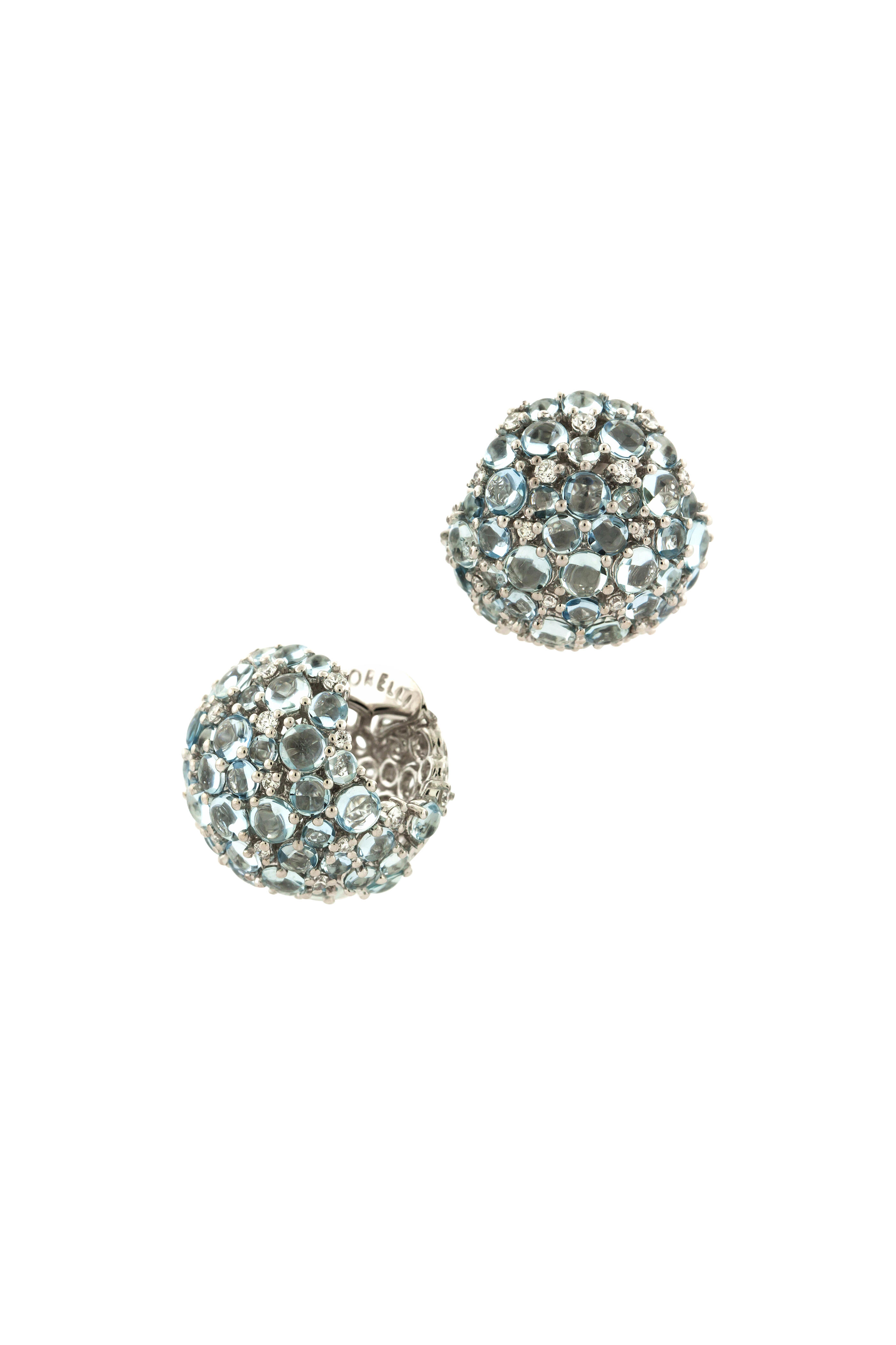 18k white gold. 5.00cts aquamarine gemstones. Larange ball huggie clip earrings.