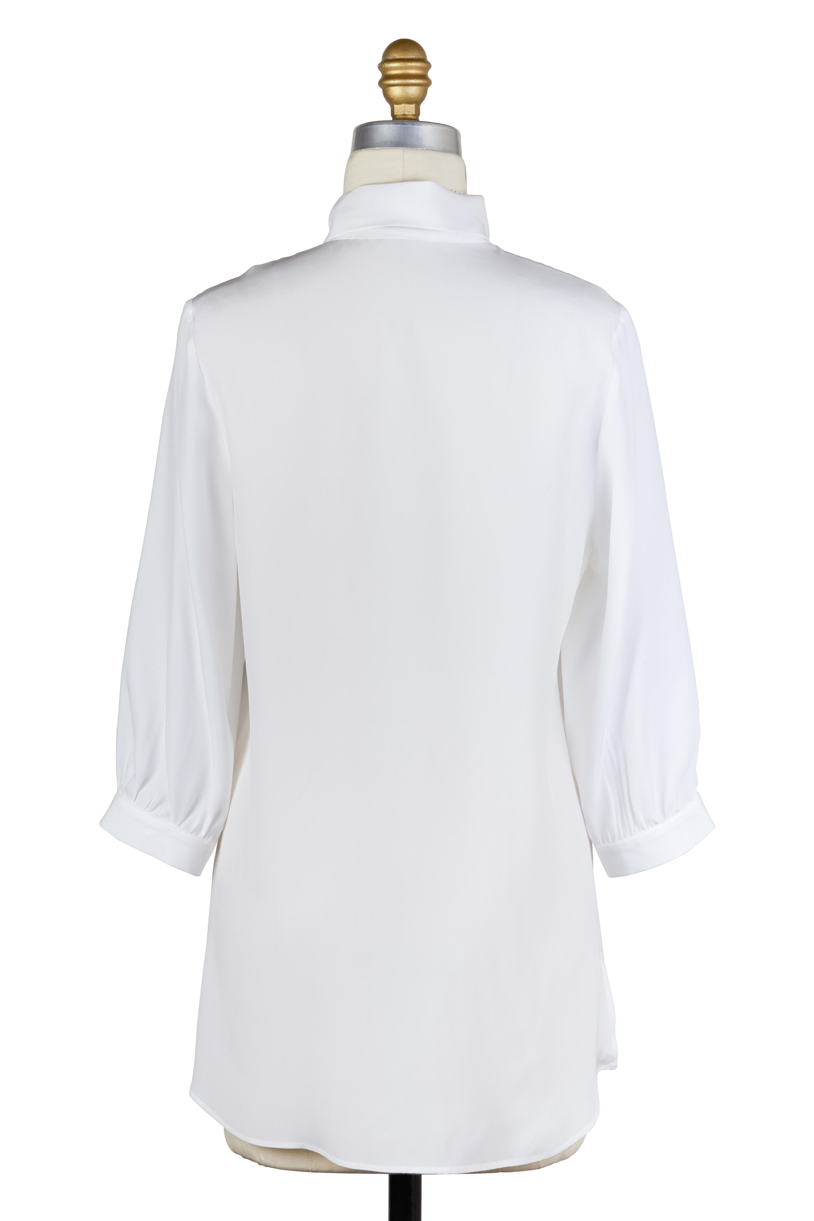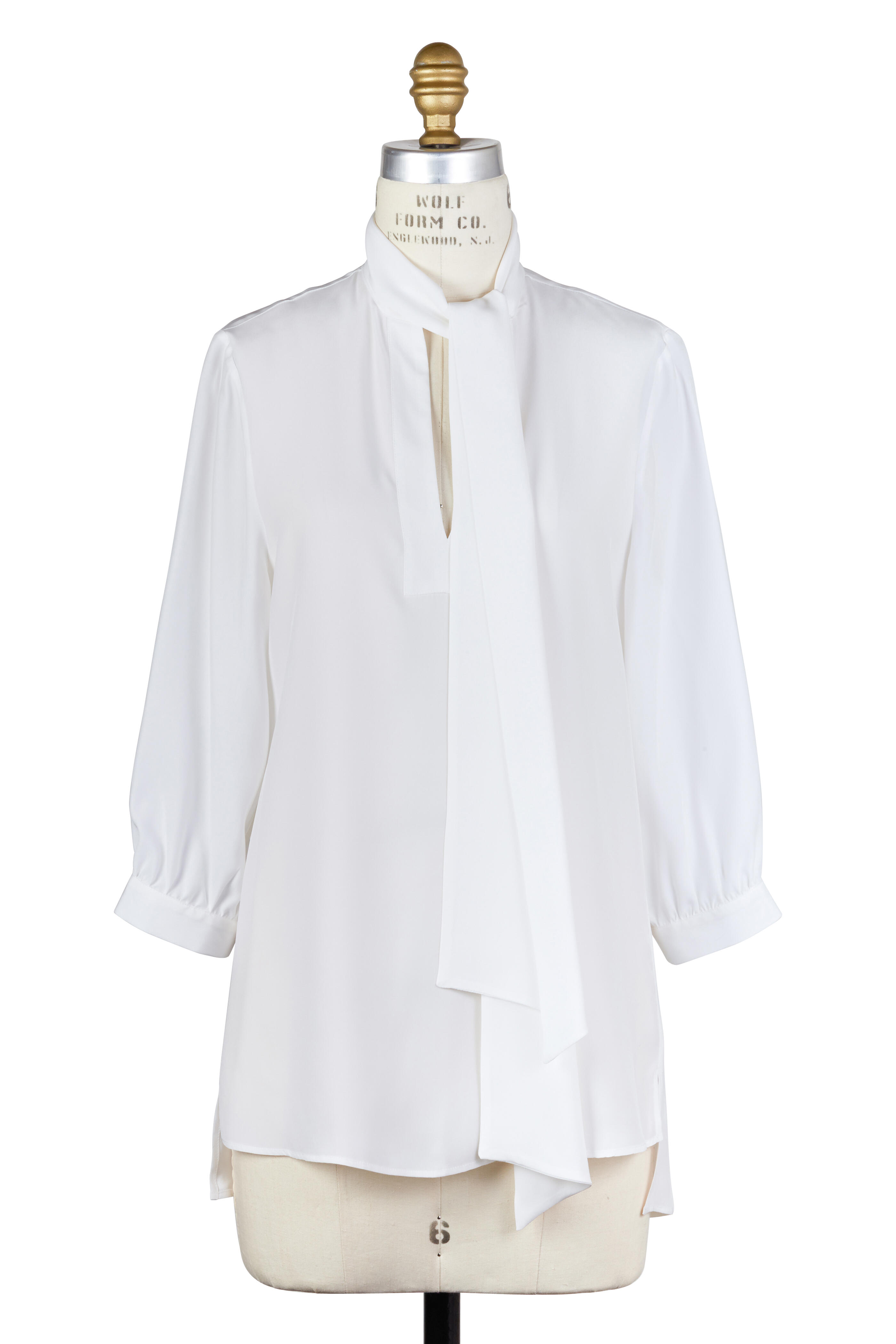 White Silk Tie-Neck Three-Quarter Sleeve Blouse