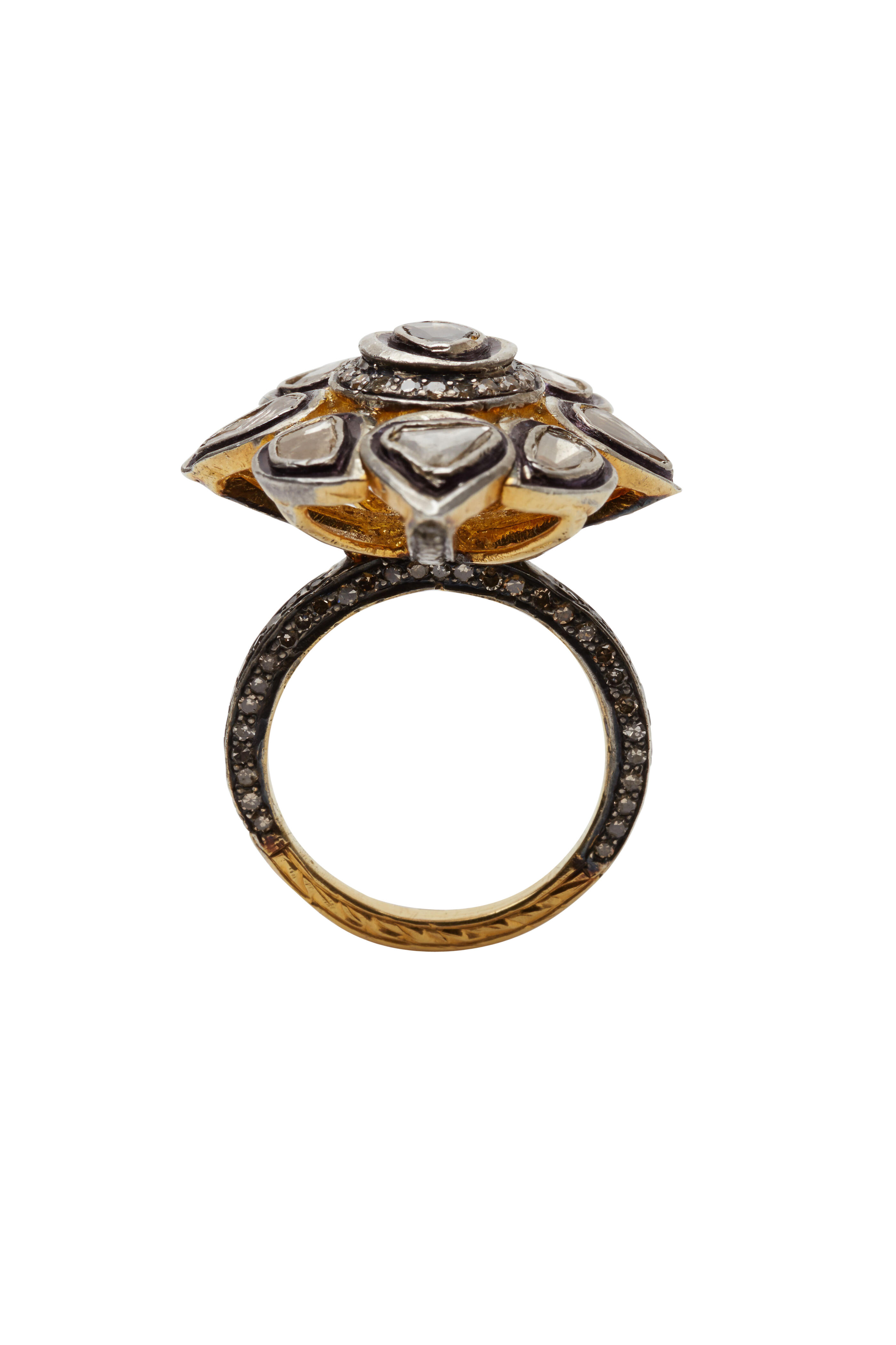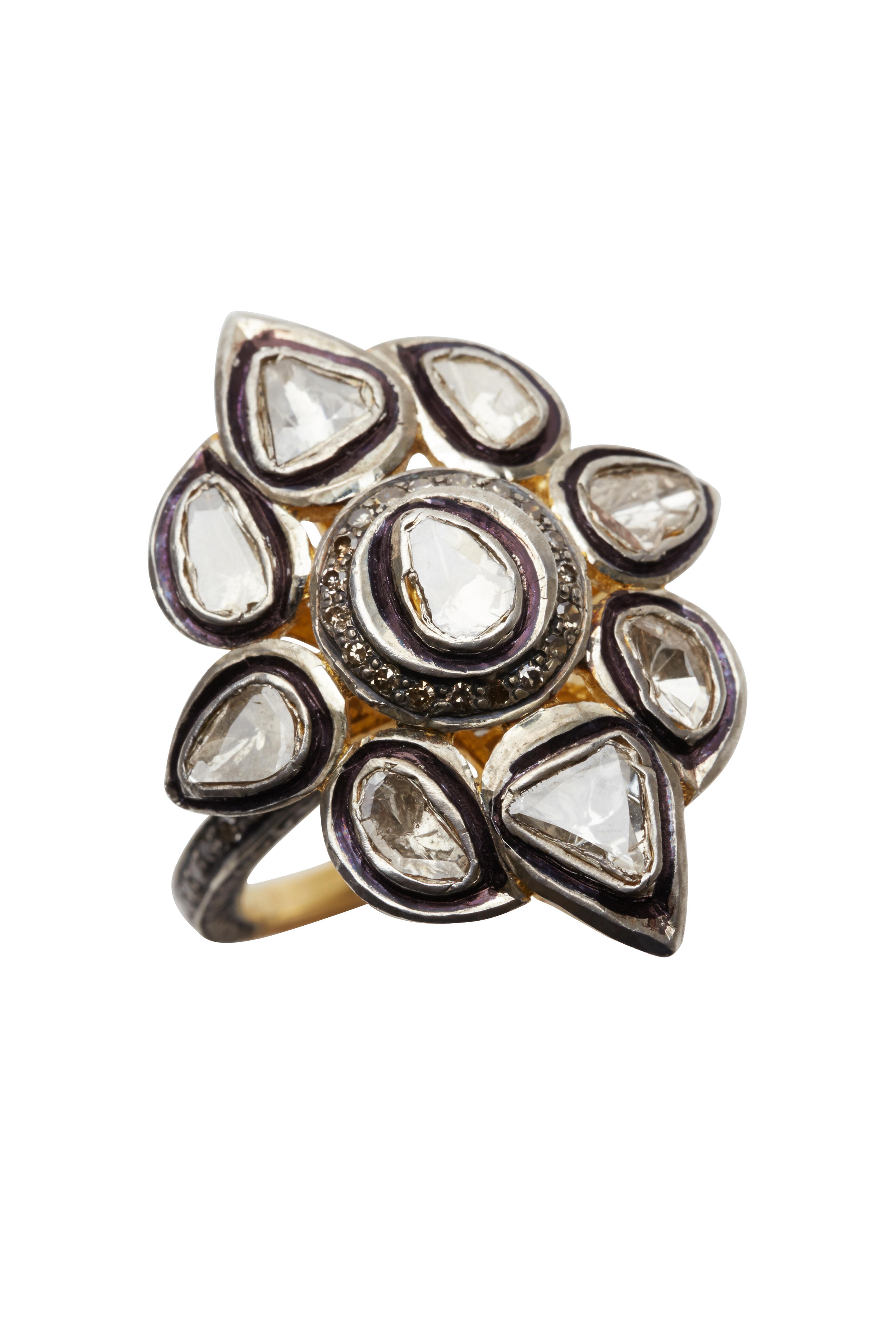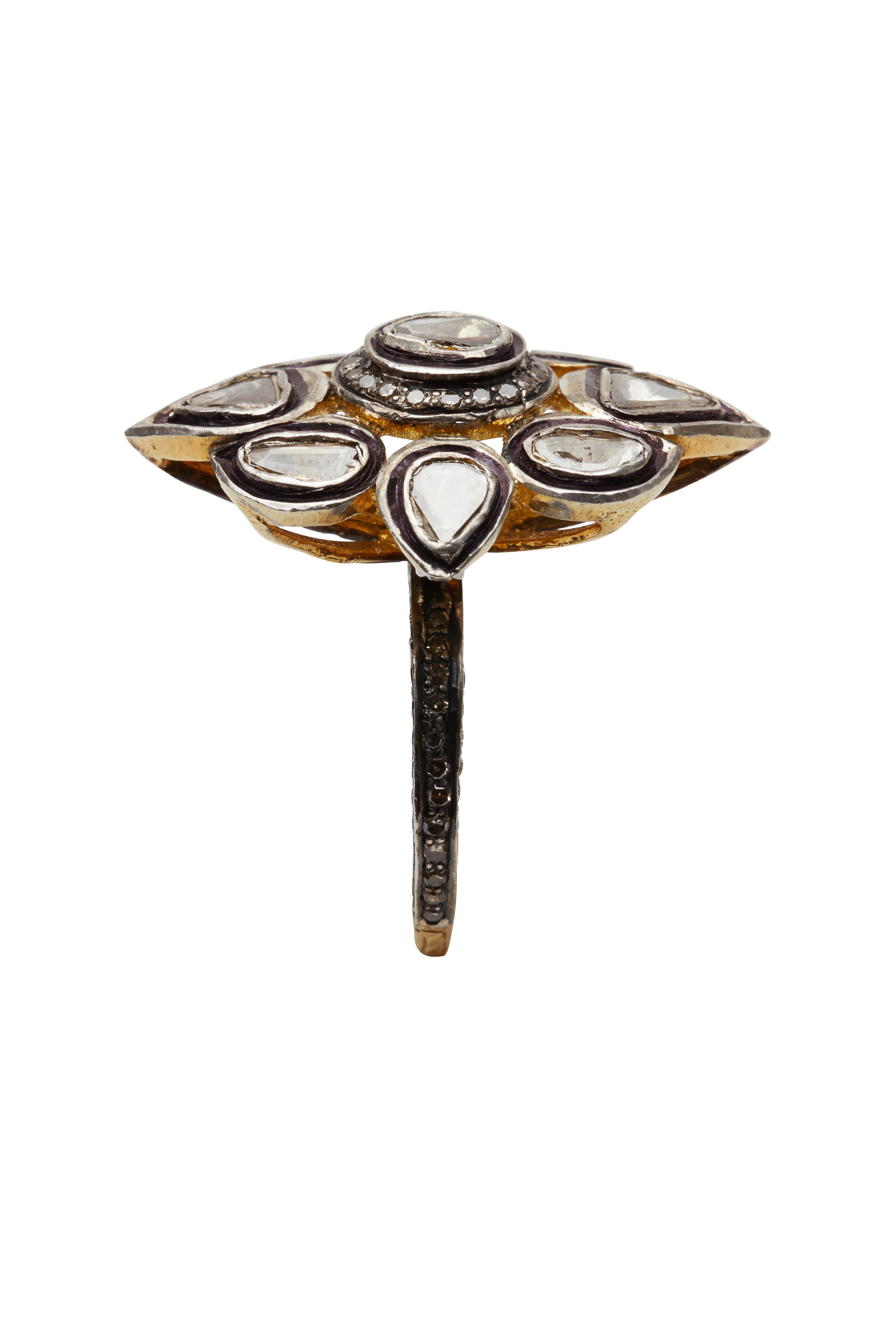 14k yellow gold & sterling silver. Rose-cut white diamonds.