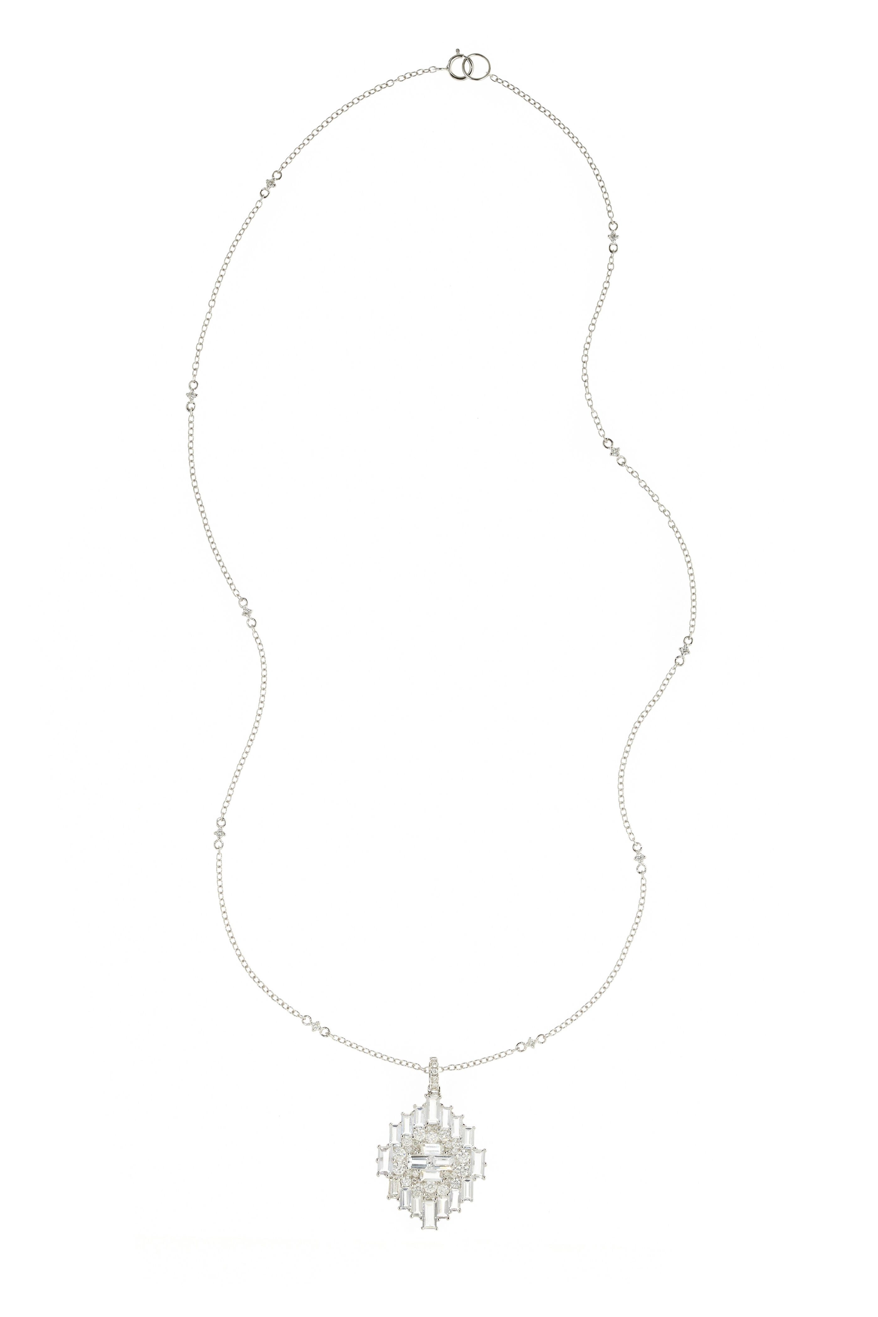 18k white gold. 3.4cts white sapphire gemstones. 0.8cts white diamonds. 18" length.