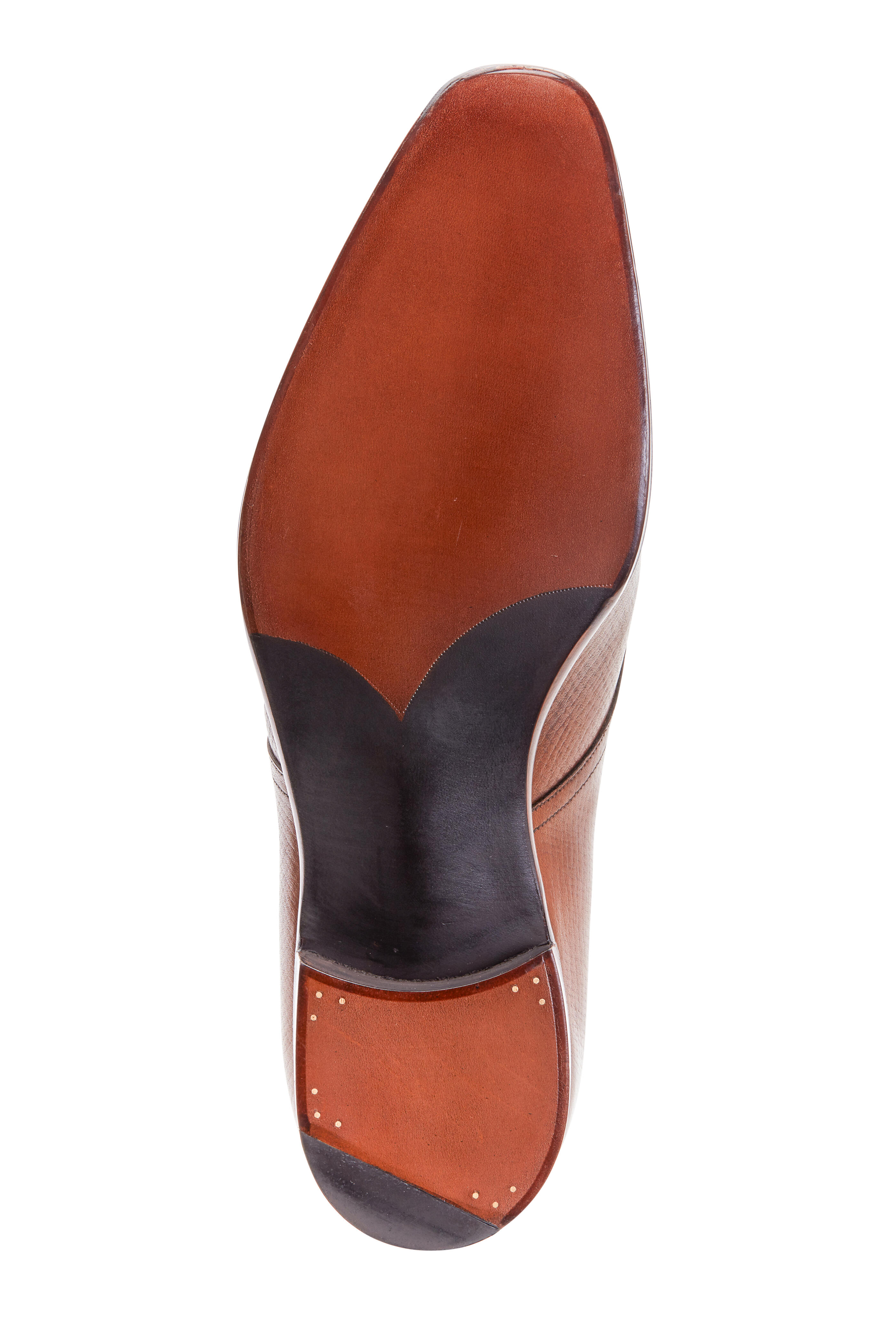 Calfskin grained leather upper. Lace-up closure. Leather lining. Leather sole, partial rubber heel. Made in England.