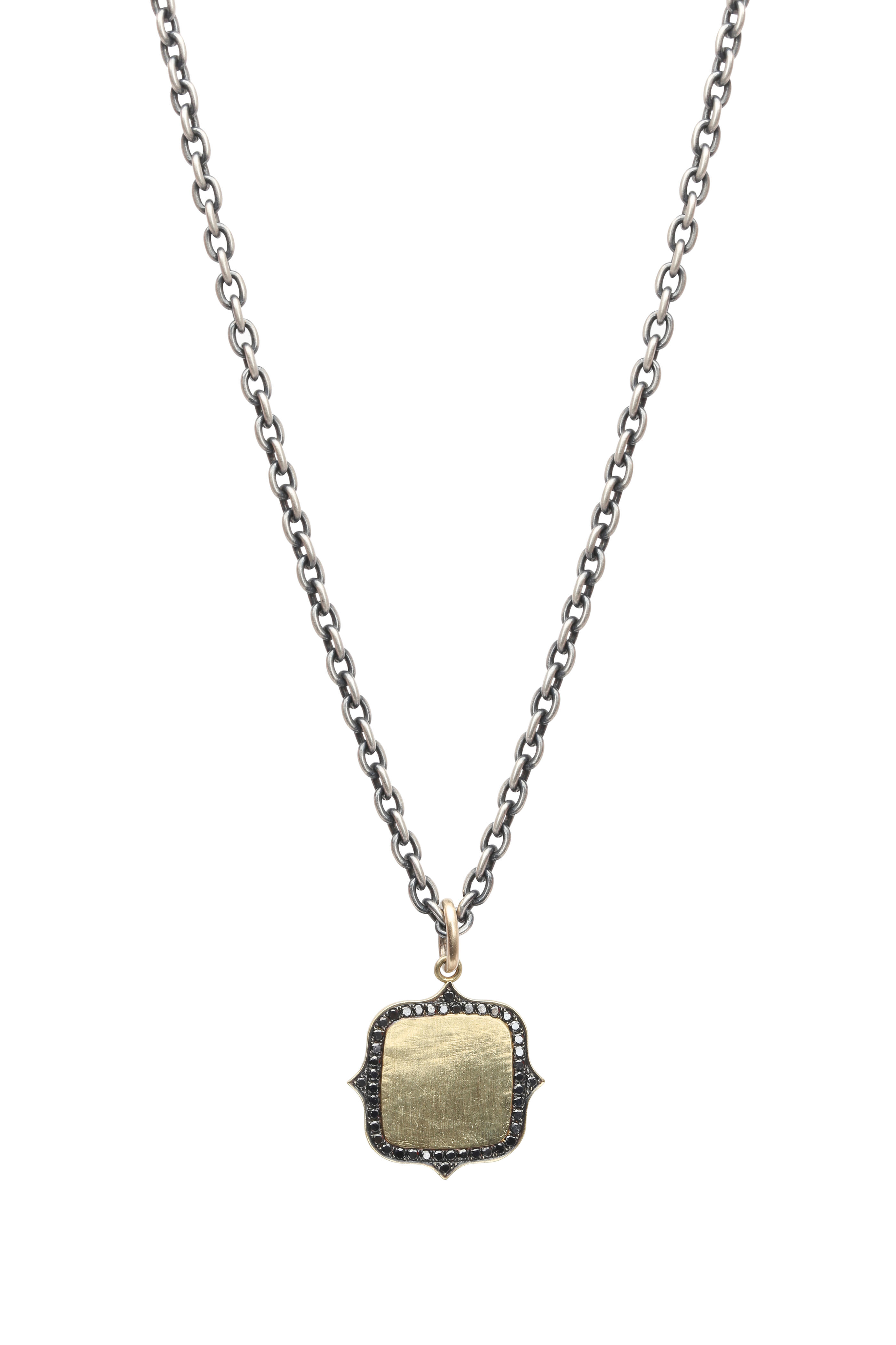 18k yellow gold & .925 sterling silver. 0.41cts black diamonds. Initial pendant on chain. *Chain not included.