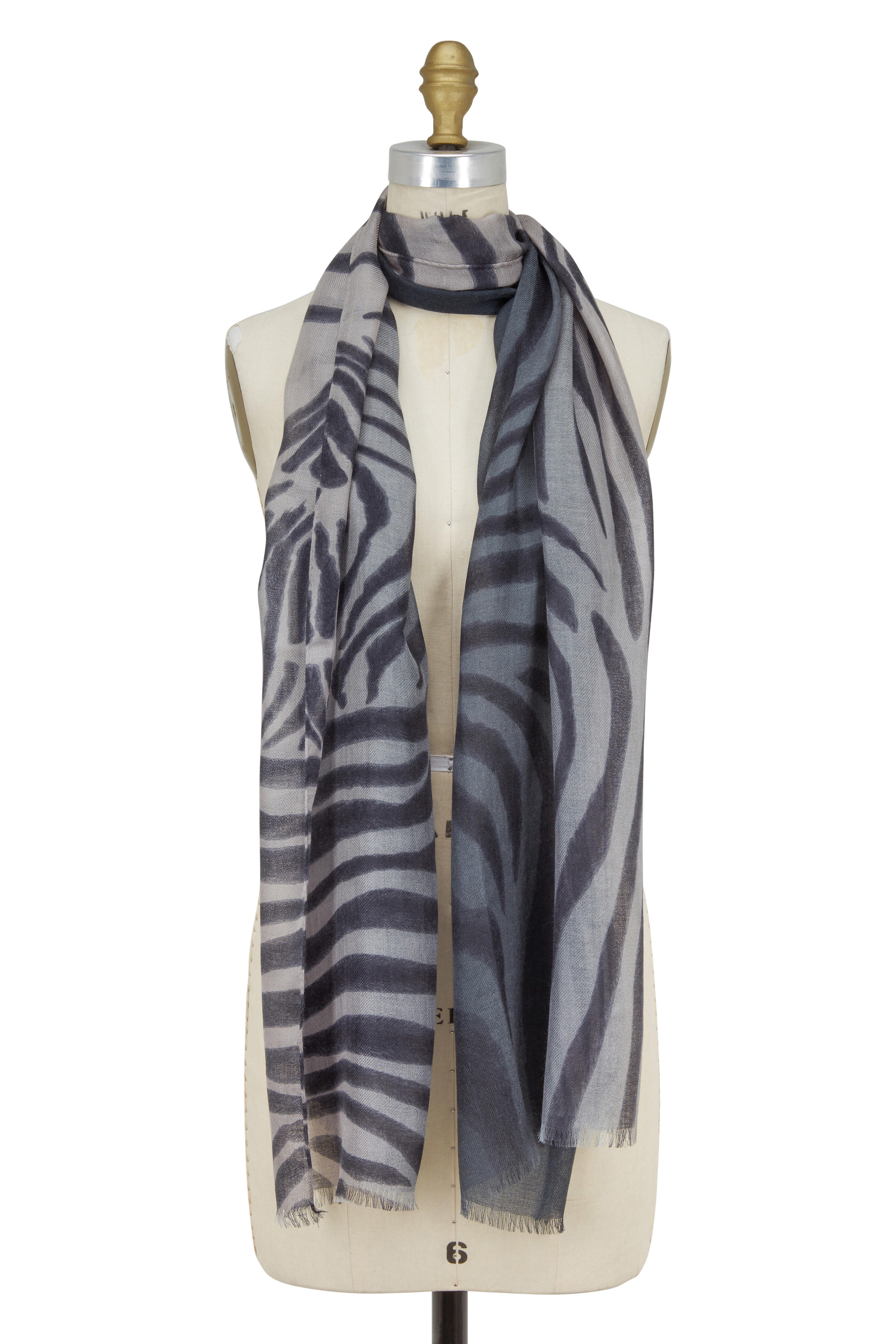 Dove Gray Animal Print Cashmere & Silk Scarf