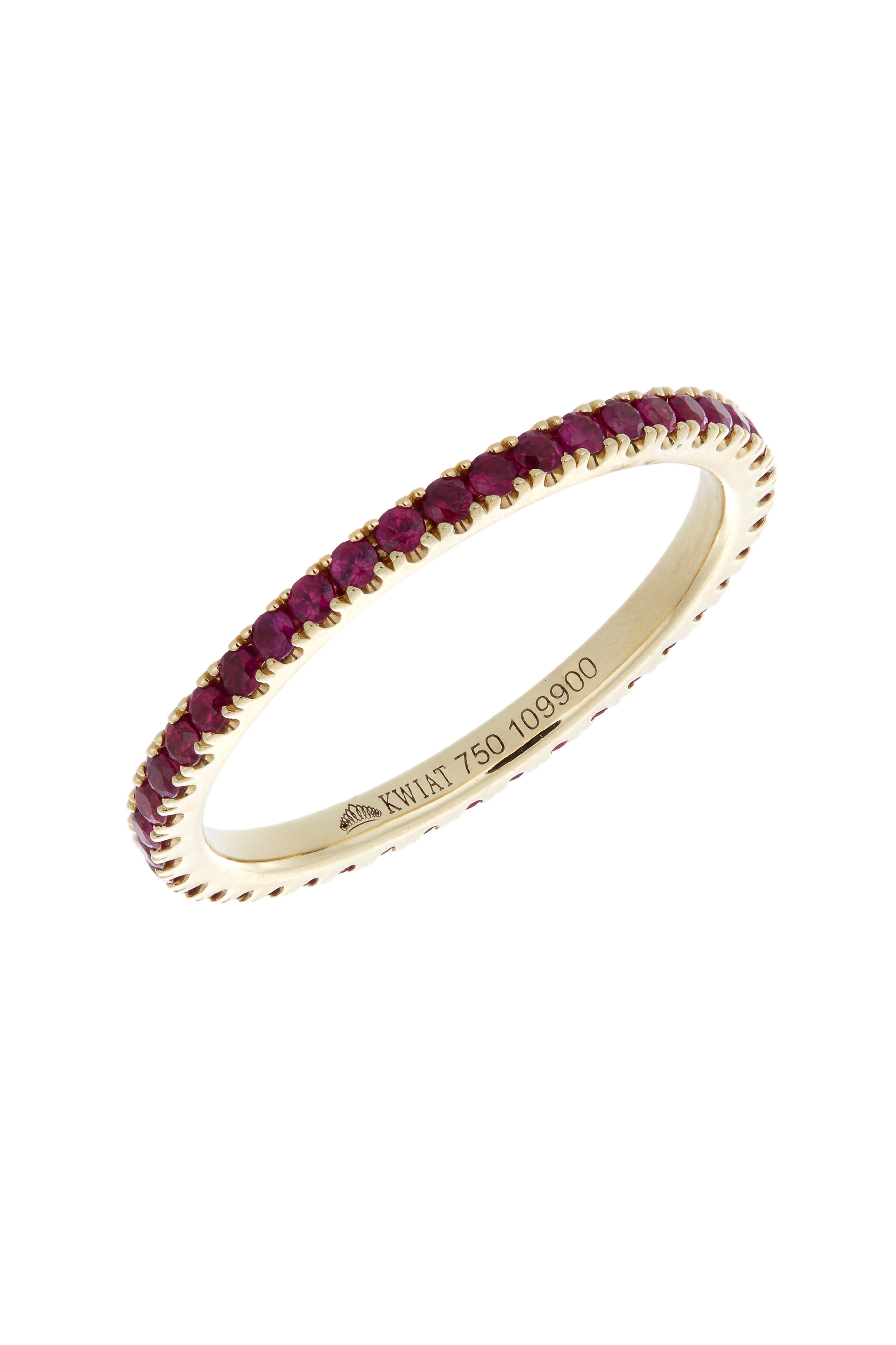 18K yellow gold. Brilliant cut rubies. 1.65mm wide.