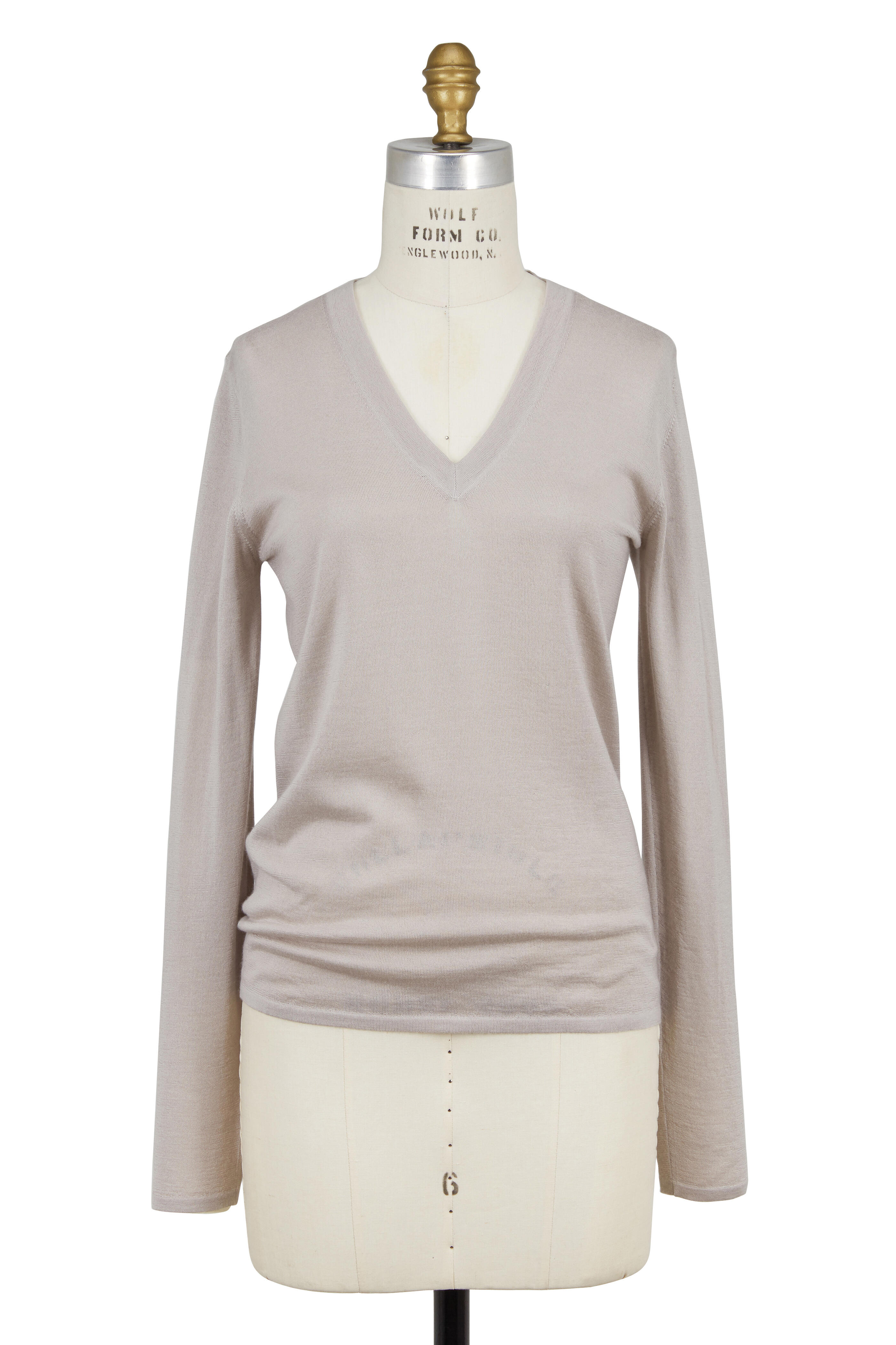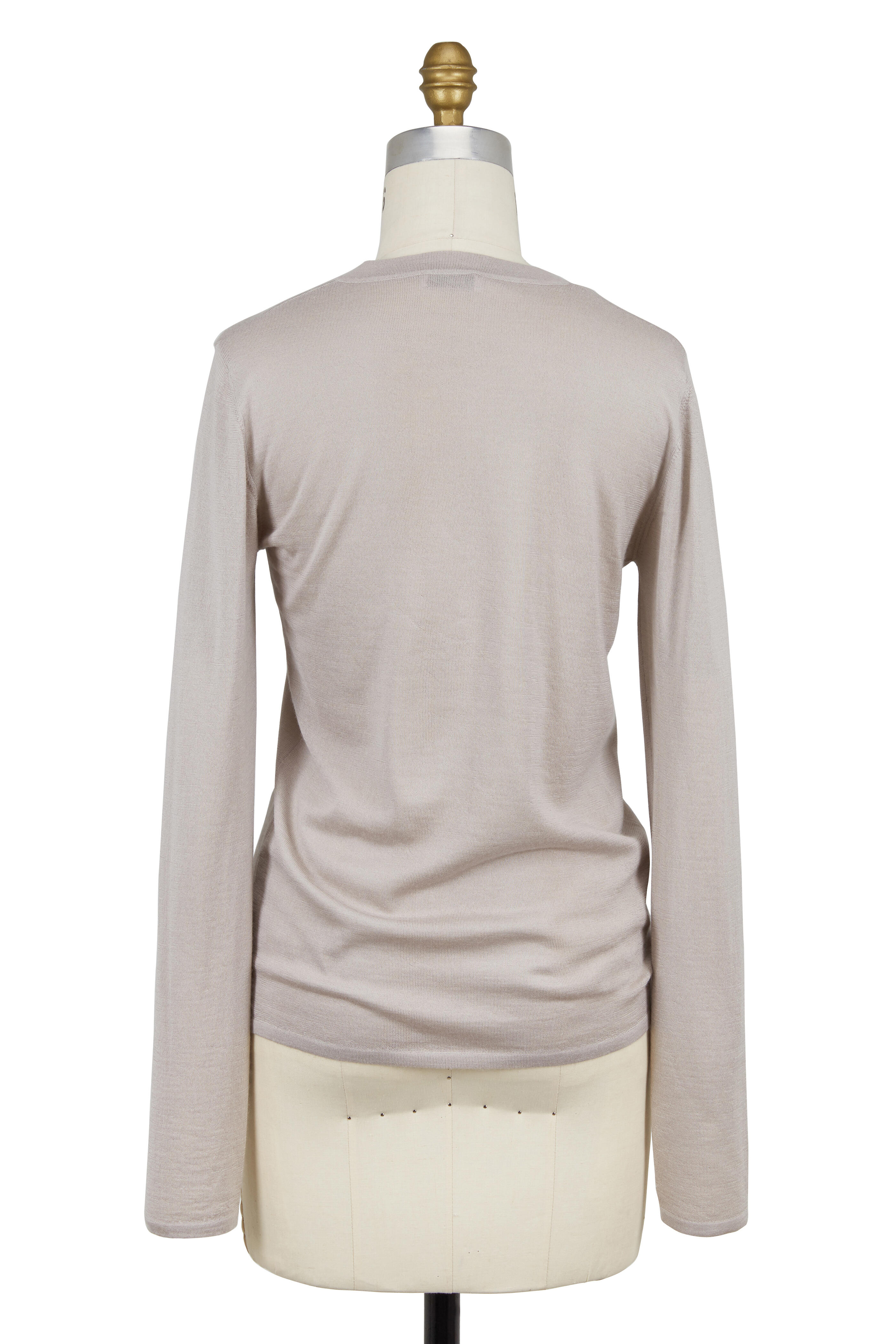 V-neckline. Banded trim. Made in Italy. 70% cashmere, 30% silk. Hand wash.