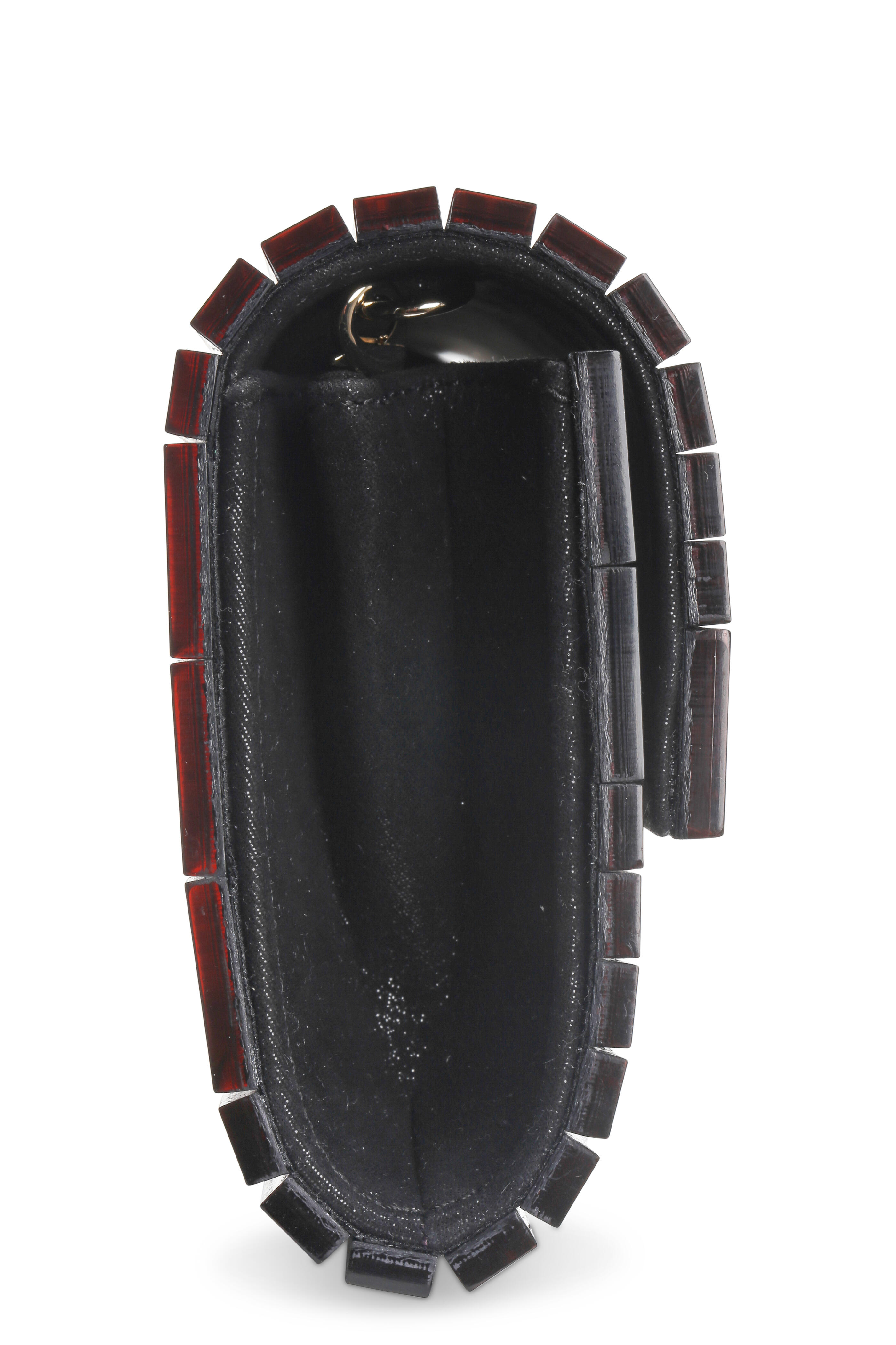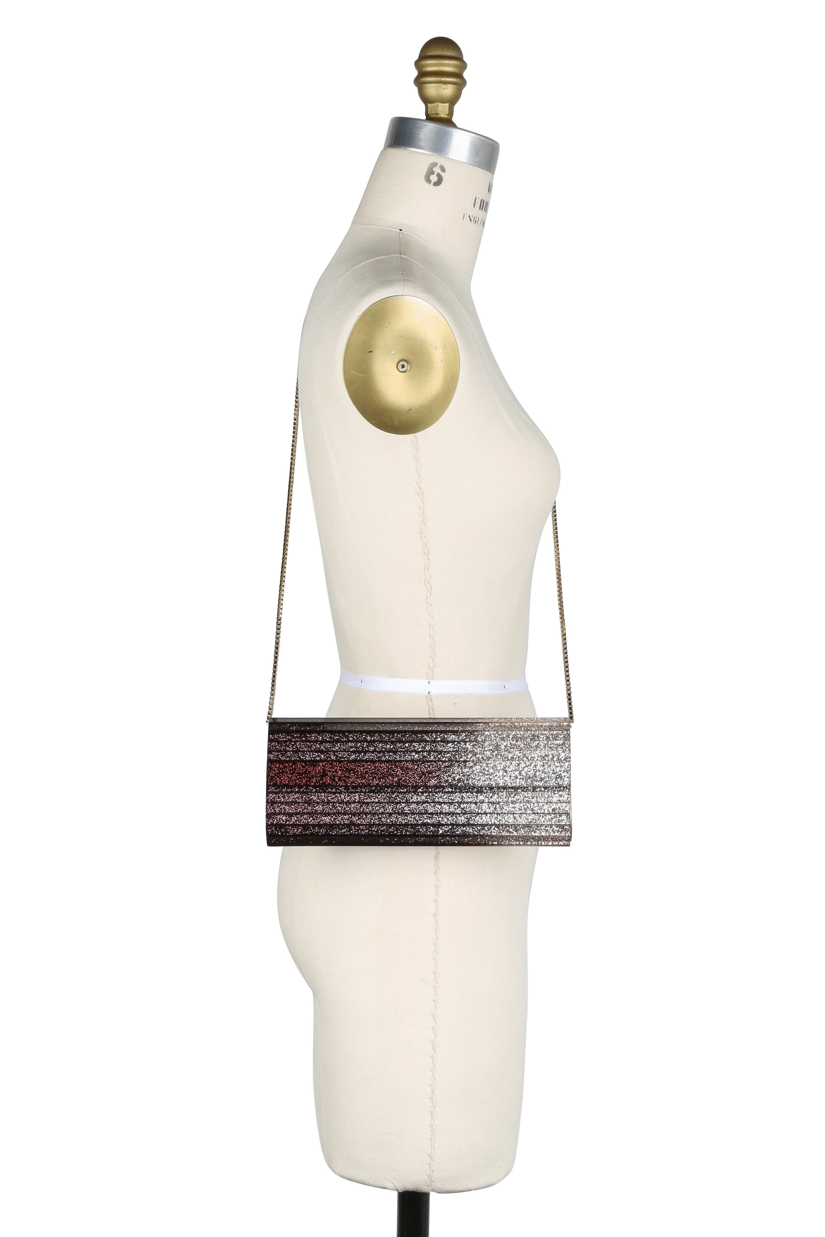 Glitter infused acrylic. Front flap with magnetic snap closure. Detachable chain strap. Interior pocket. Fully lined. Made in Italy. Width: 9 ½". Height: 4". Depth: 1 ½". Strap drop: 18".