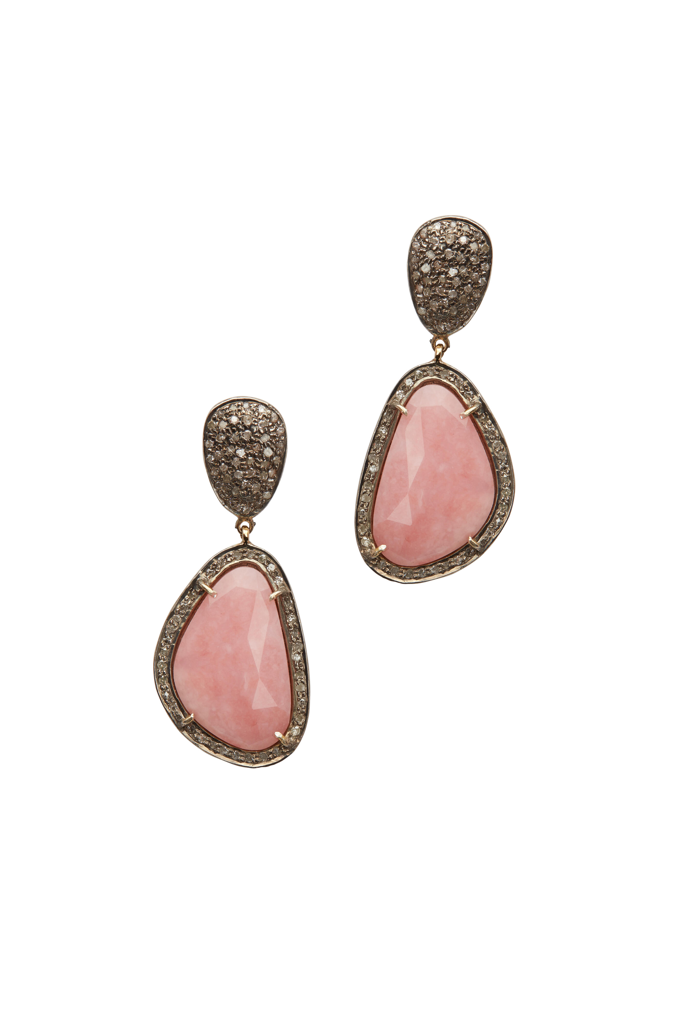 14K Gold & Silver Pink Opal & Diamond Earrings