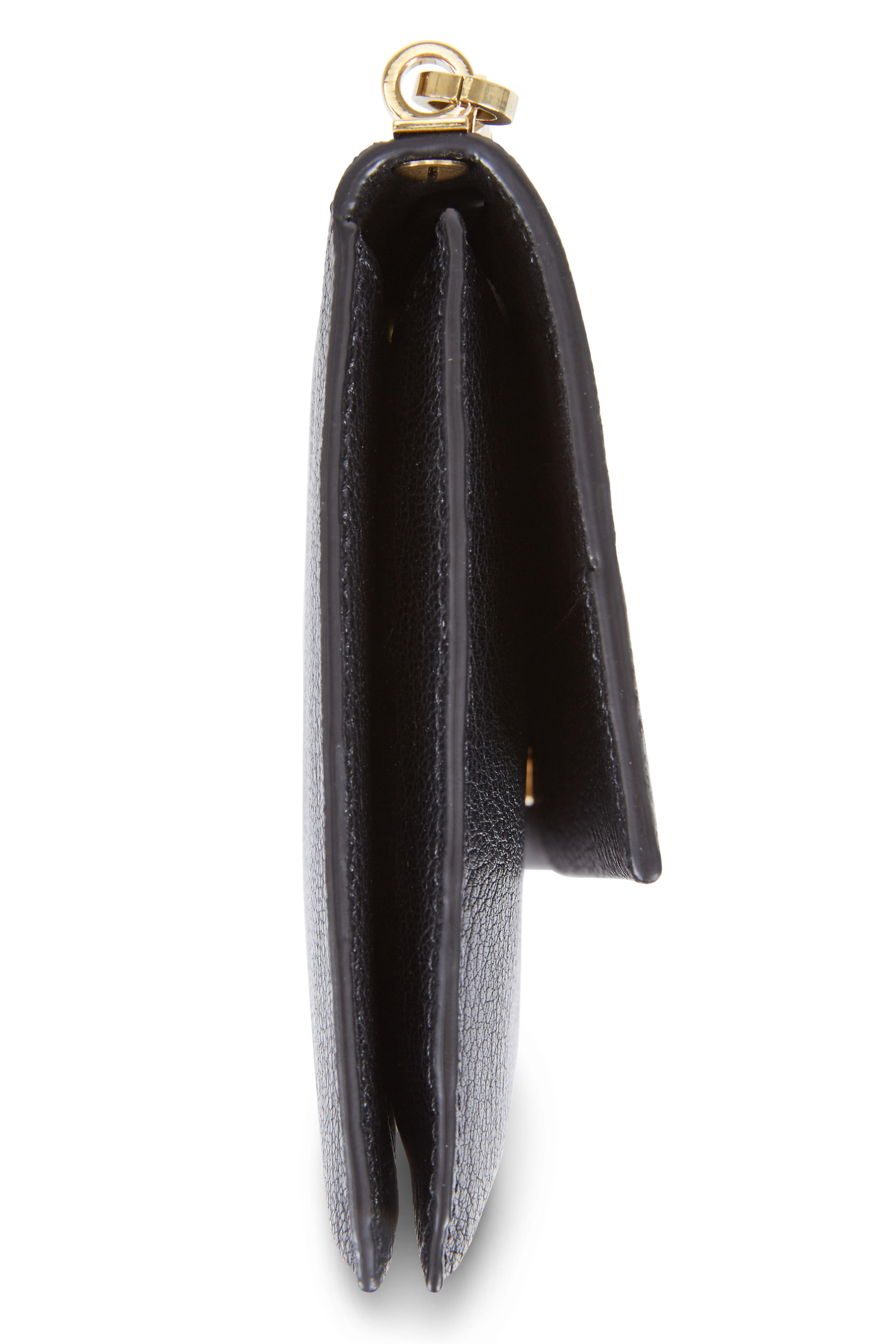 Black Pebbled Leather Chain Clutch