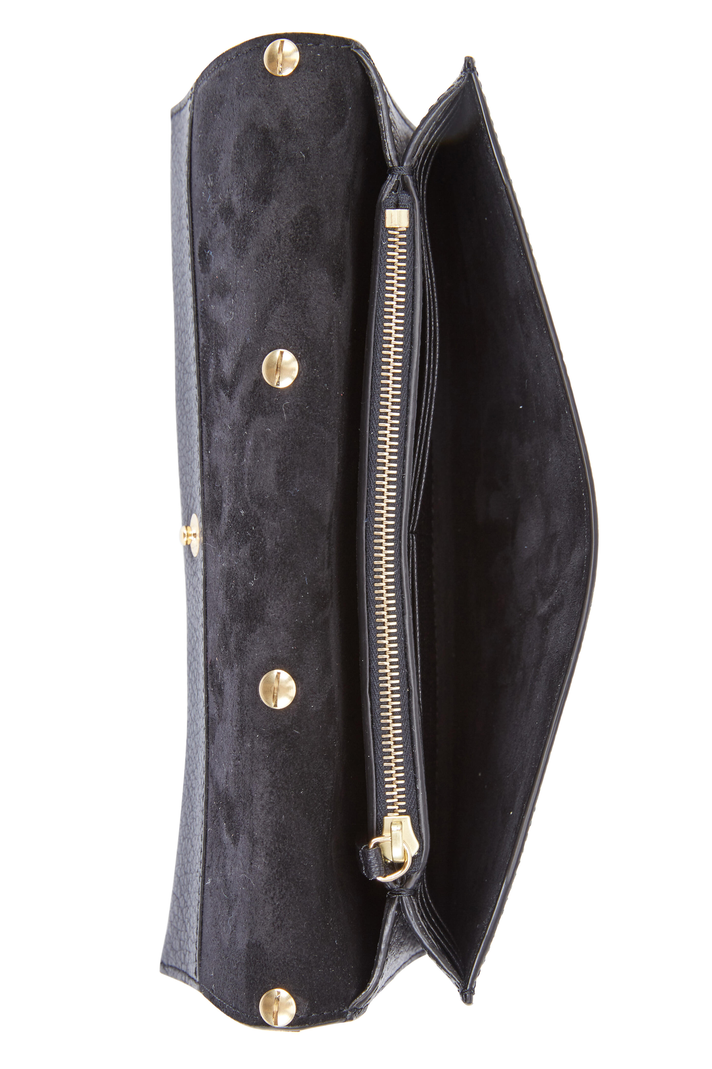 - One interior zip and two open pockets, six card slots