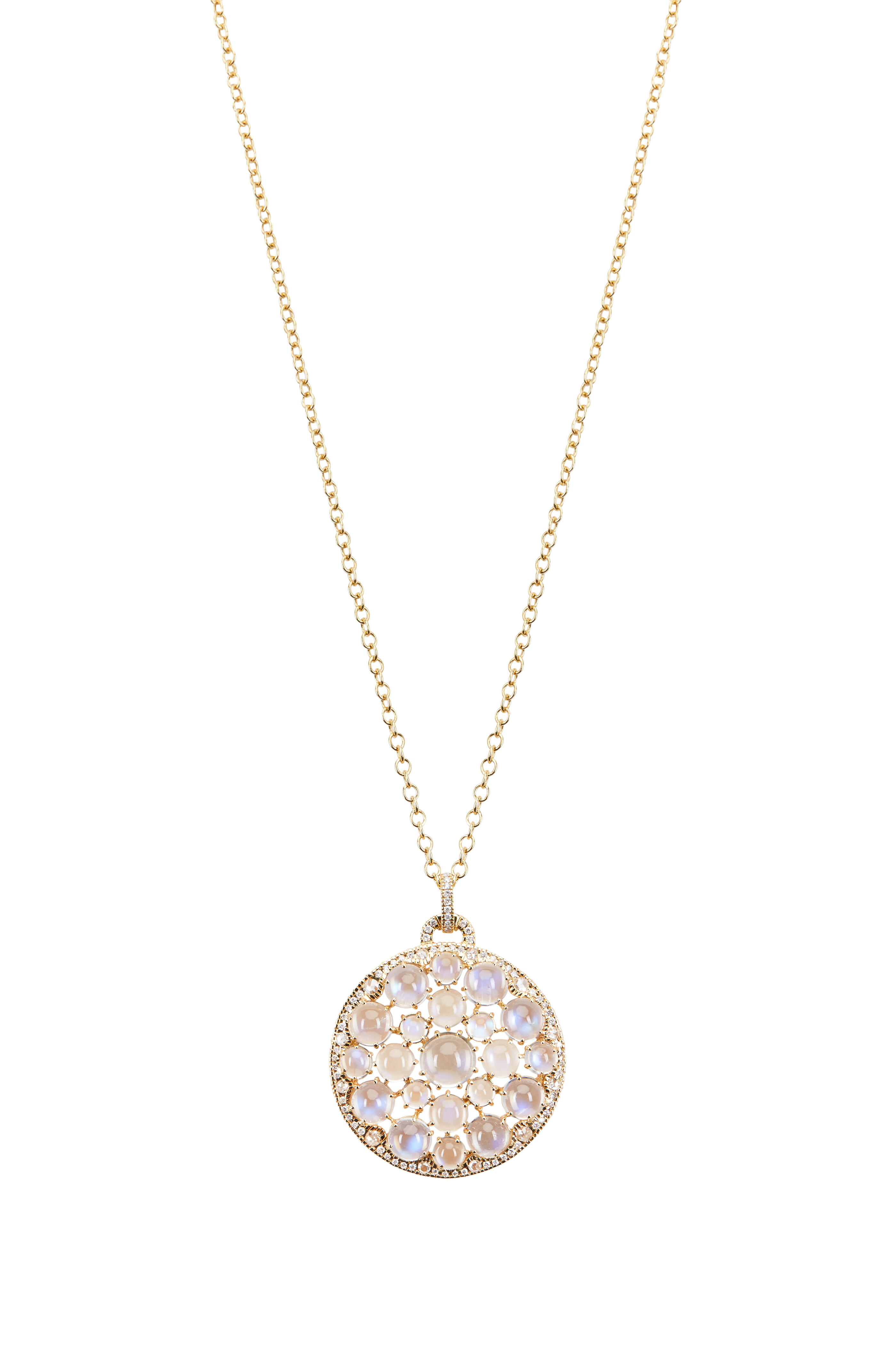 Yellow Gold Ceylon Blue Moonstone Diamond Necklace