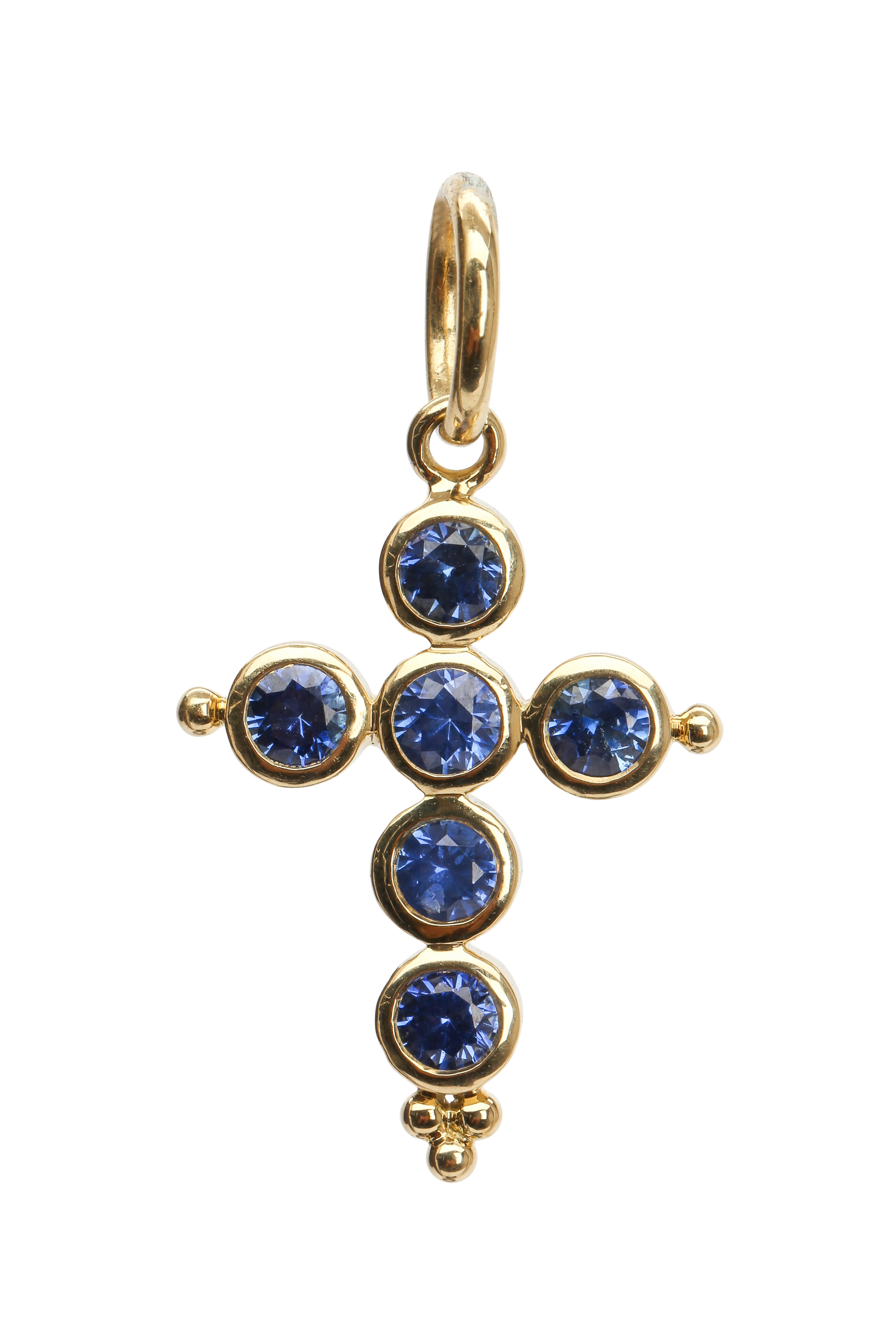 18K yellow gold. Sapphires, 0.90 total carat weight. *Chain not included. 1.13"L X 0.6"W.