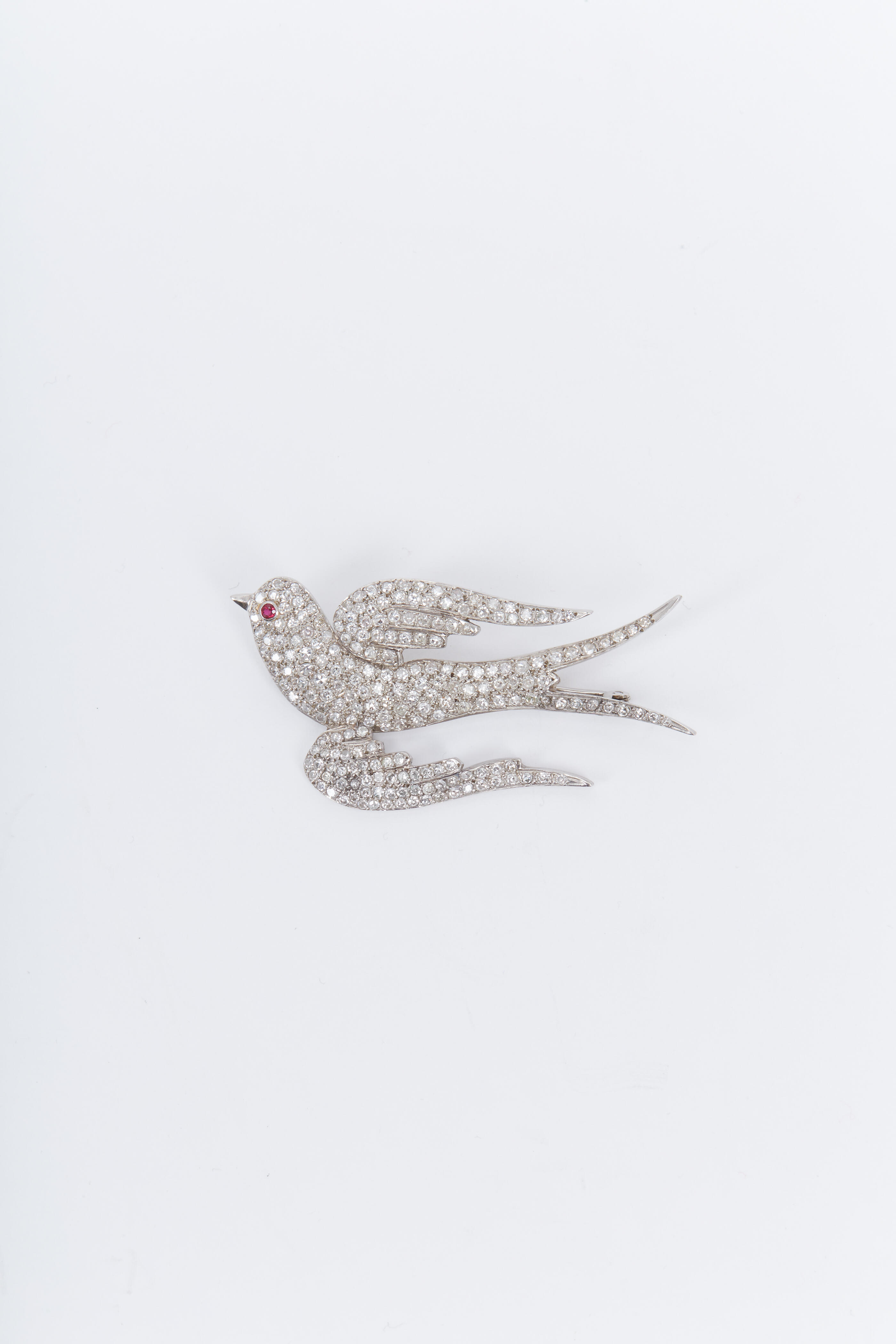 Platinum. 4cts single-cut white diamonds. Bird brooch.