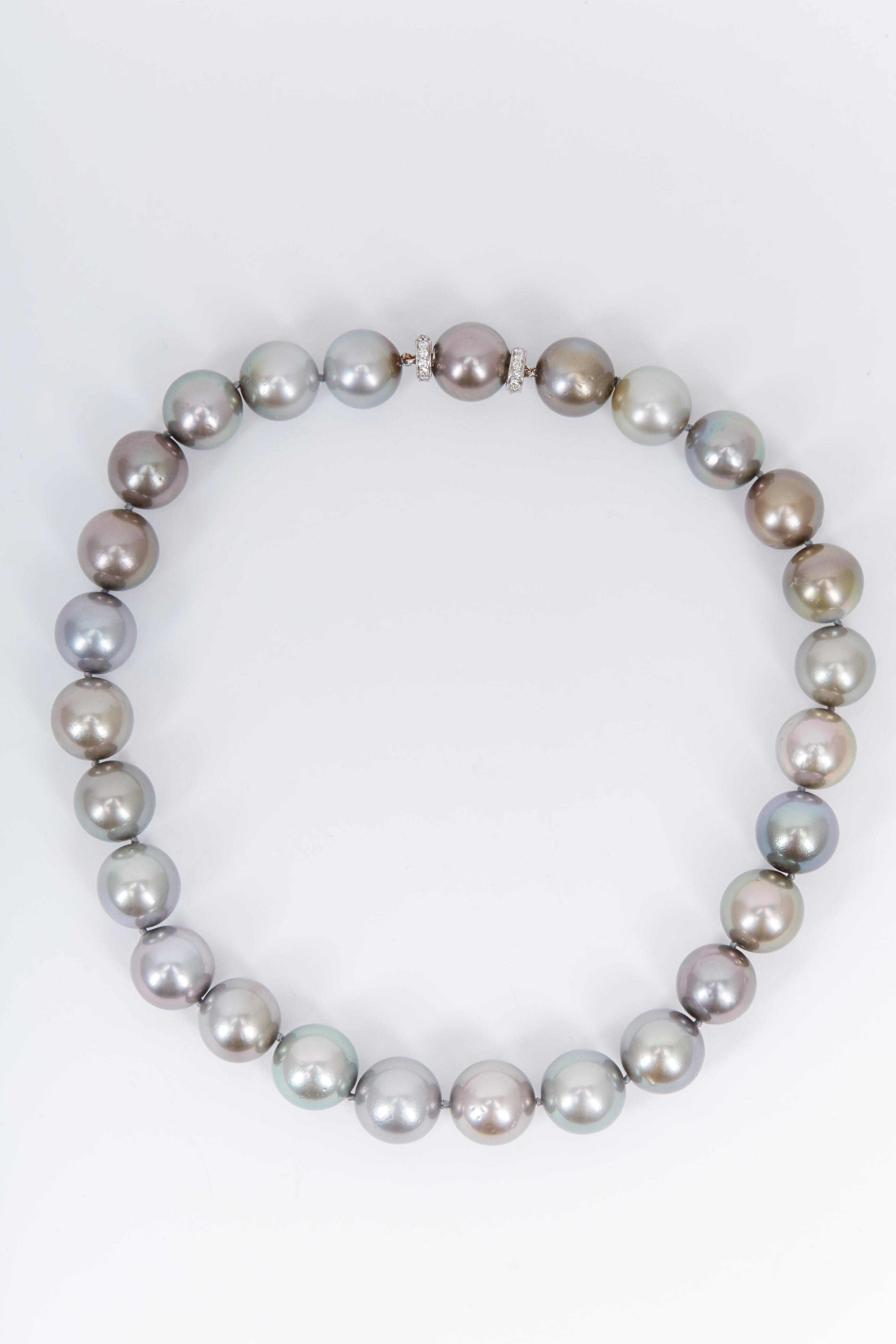 15 - 16.4mm Tahitian pearls. 0.50cts round, brilliant-cut white diamonds.