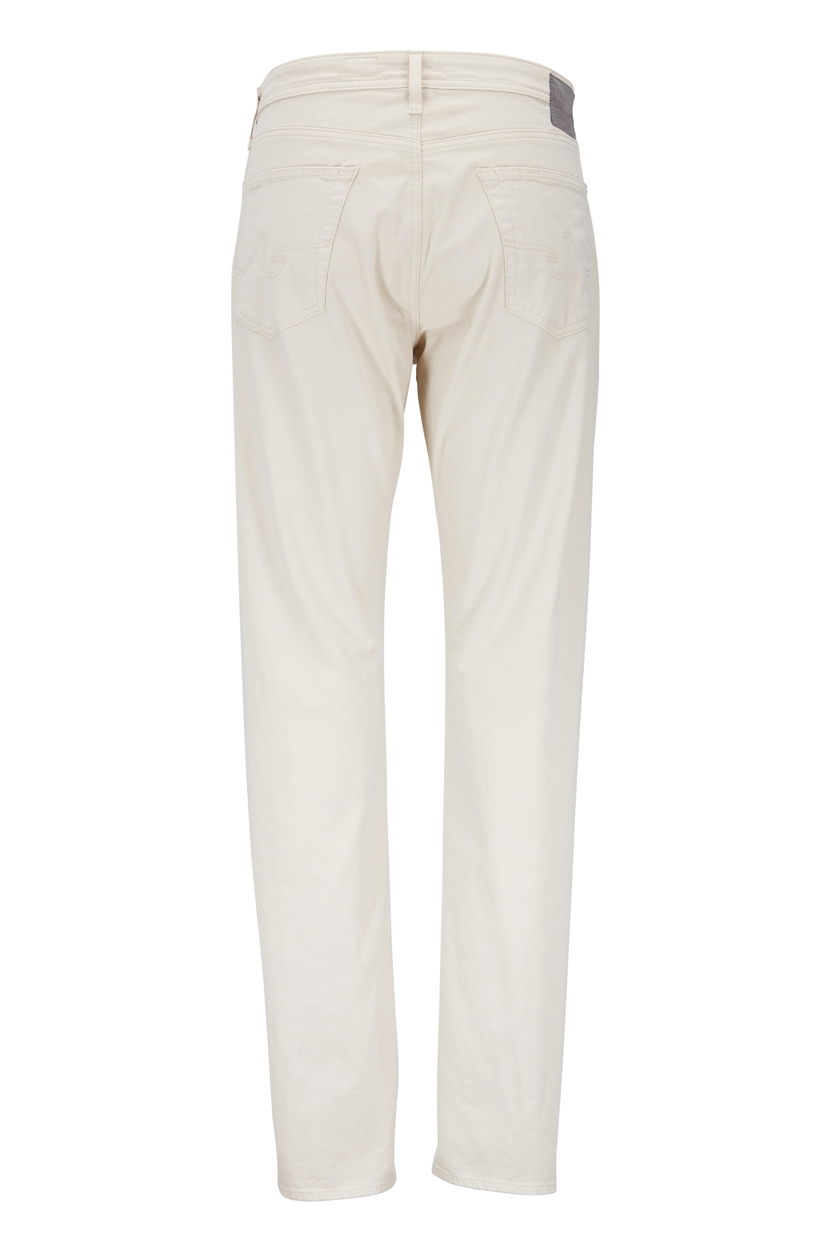 8.4 oz. sueded stretch sateen. Zip and one button fly closure. Five pocket styling. Imported. Slightly relaxed. Tailored leg. Front rise: 9.75". Inseam: 34". Knee: 17". Bottom Opening: 15.5". 97% cotton, 3% elastane. Machine wash cold.