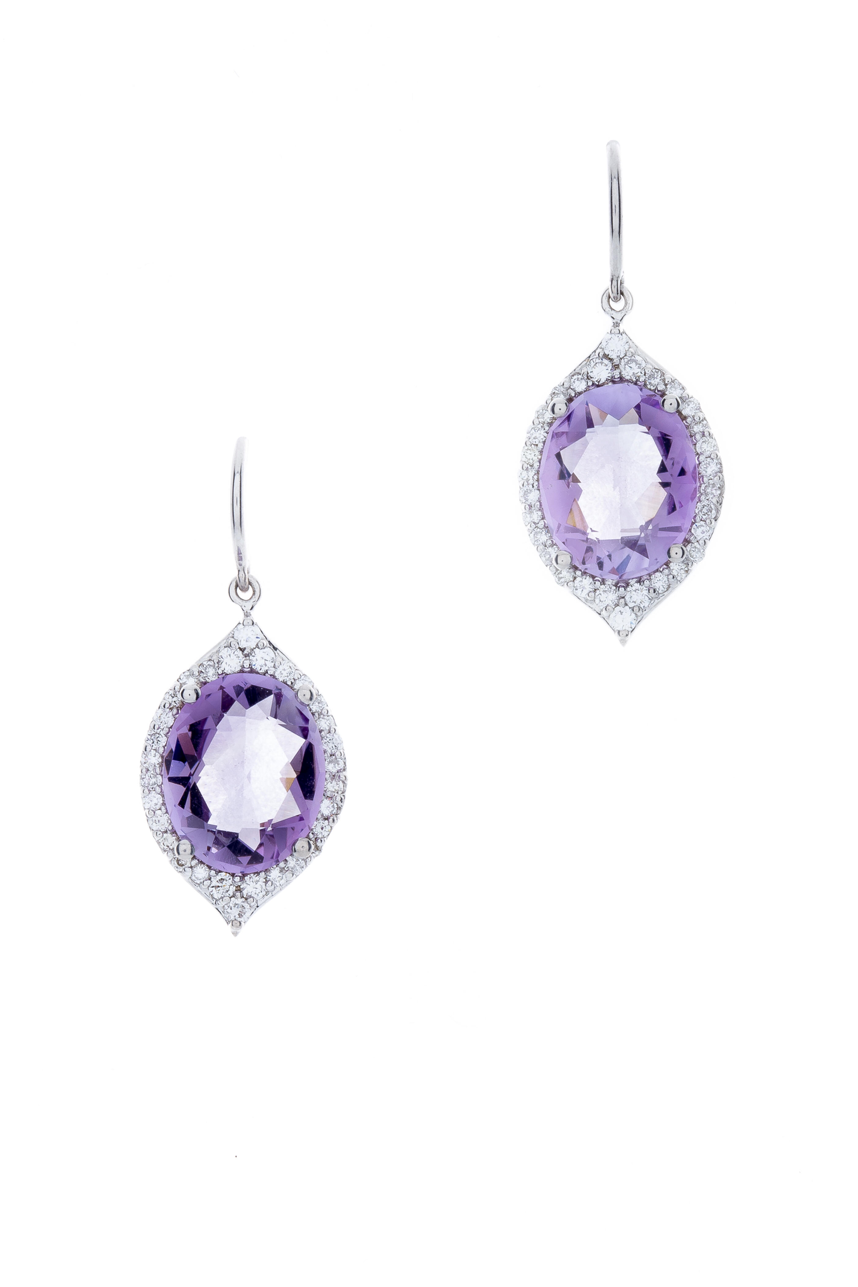 18k gold. Amethyst gemstones. 0.36cts pavé-set white diamonds.