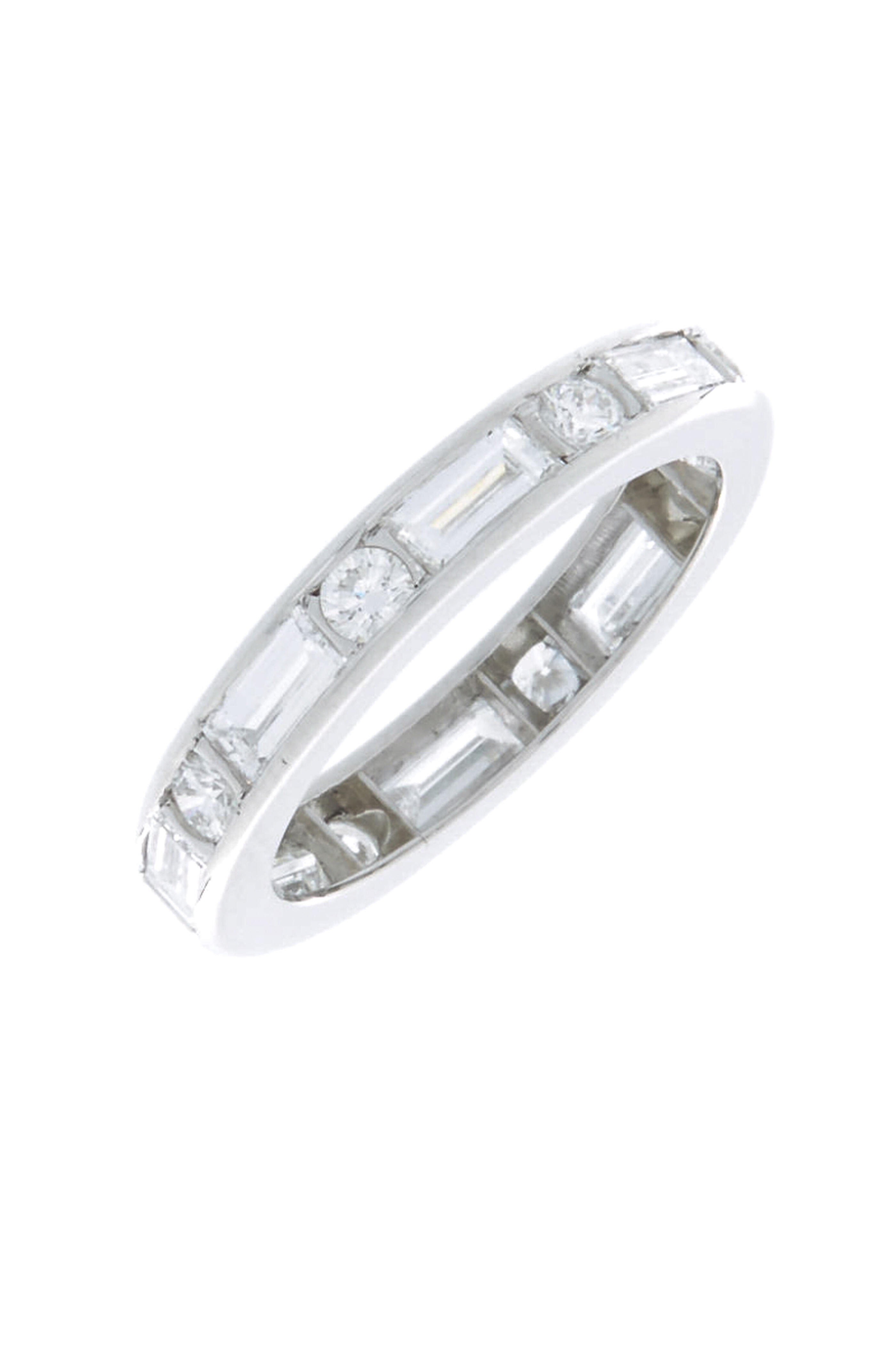 Platinum. 1.61cts (8) baguette-cut white diamonds. 0.50cts (8) round, brilliant-cut white diamonds.