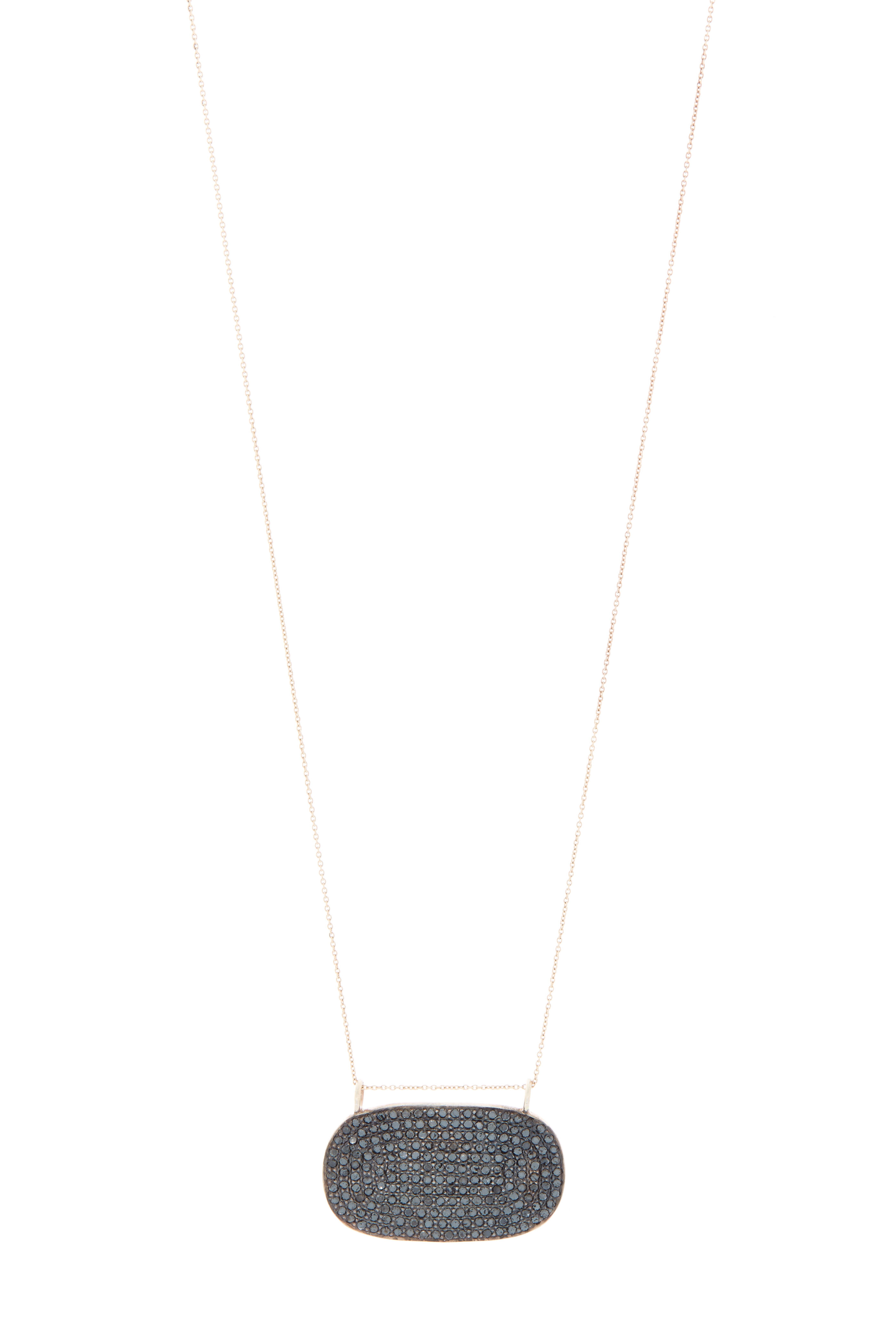 Rose & yellow gold. Pavé-set black diamonds. 30x18mm pendant. Cable chain.