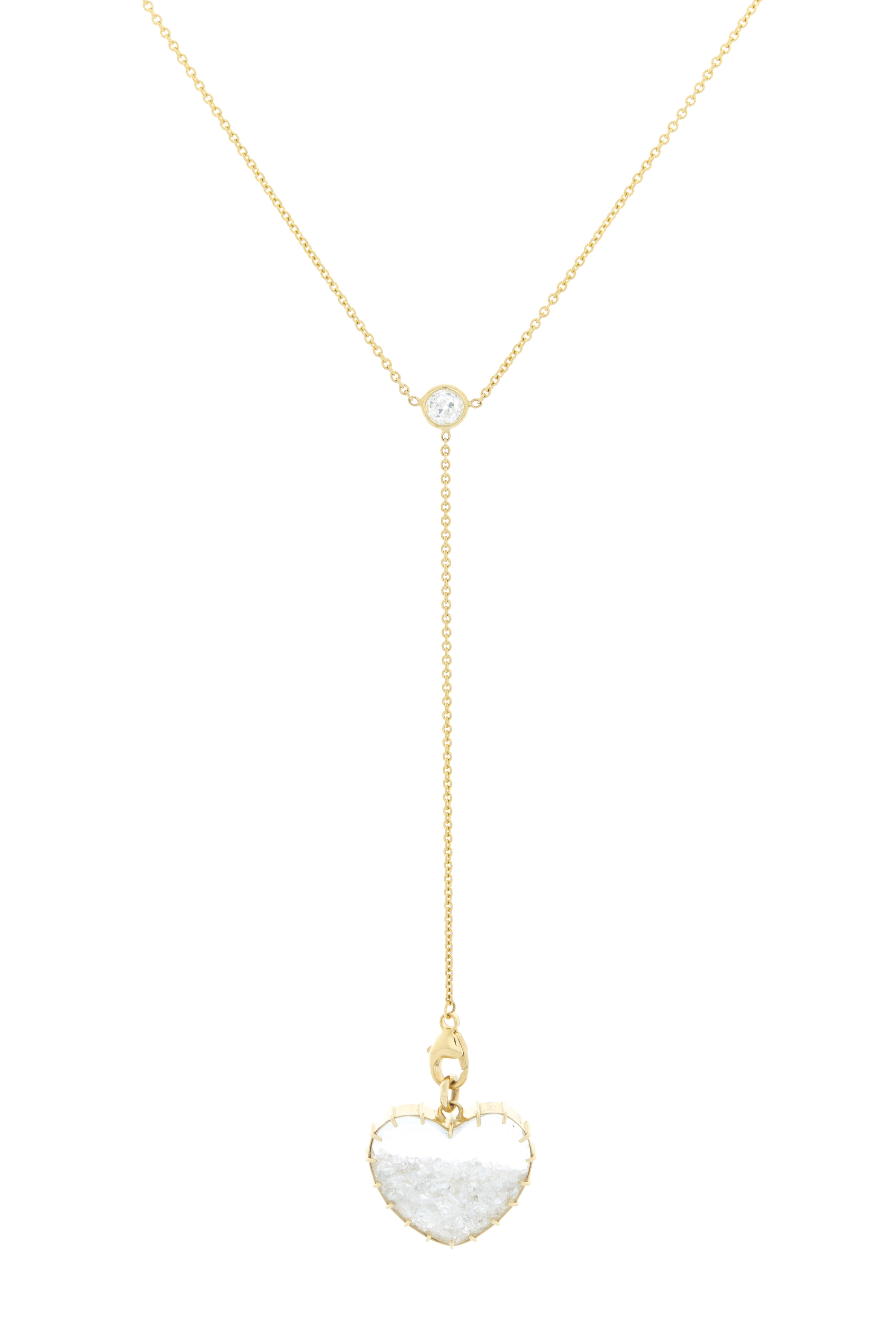 18k yellow gold. Long Y-chain. White diamond shake.