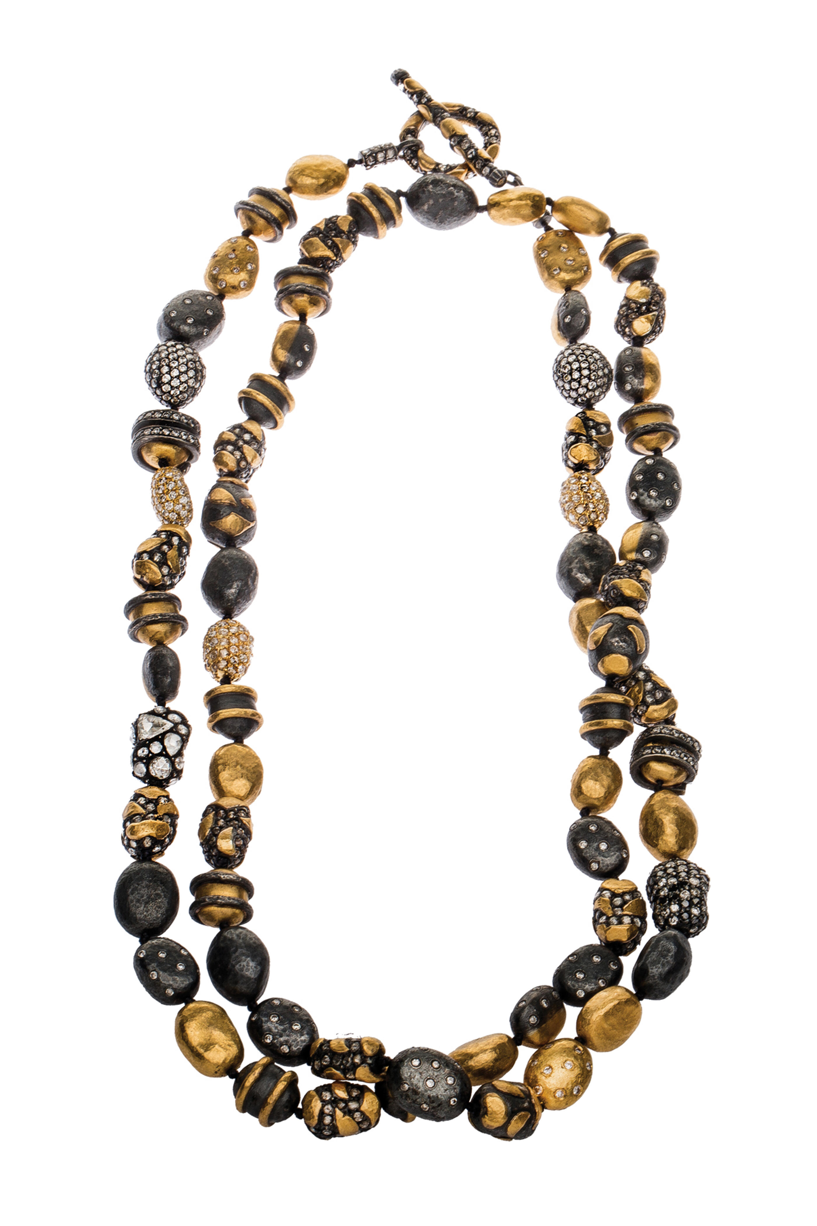24k & 18k yellow gold. 25.40cts diamonds. Mini wrap necklace. Toggle clasp. 35.5" length.