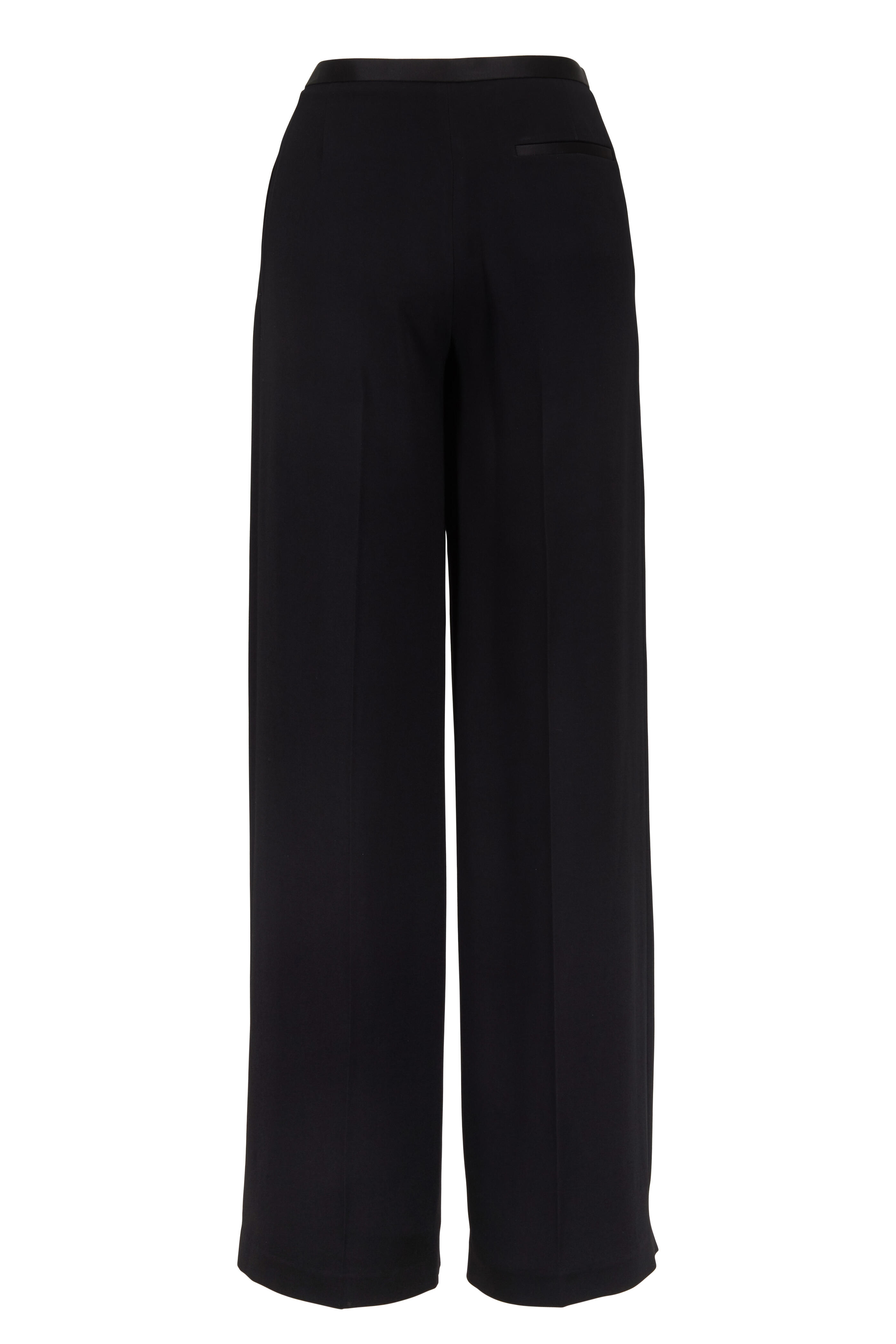 Side pockets, black welt pocket. Made in the USA. Leg opening: 11". 95% viscose, 5% elastic; trim: 100% silk. Dry clean.