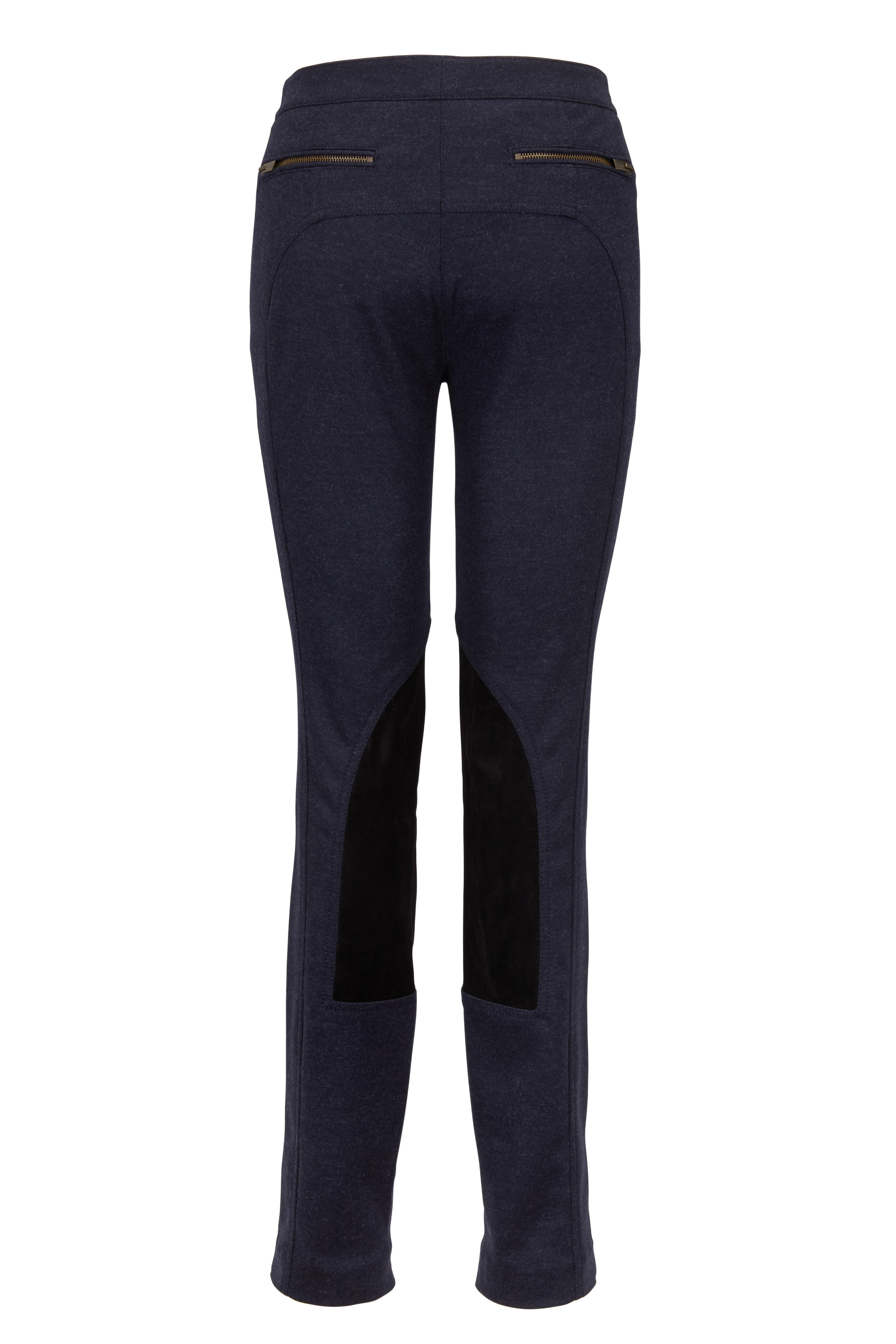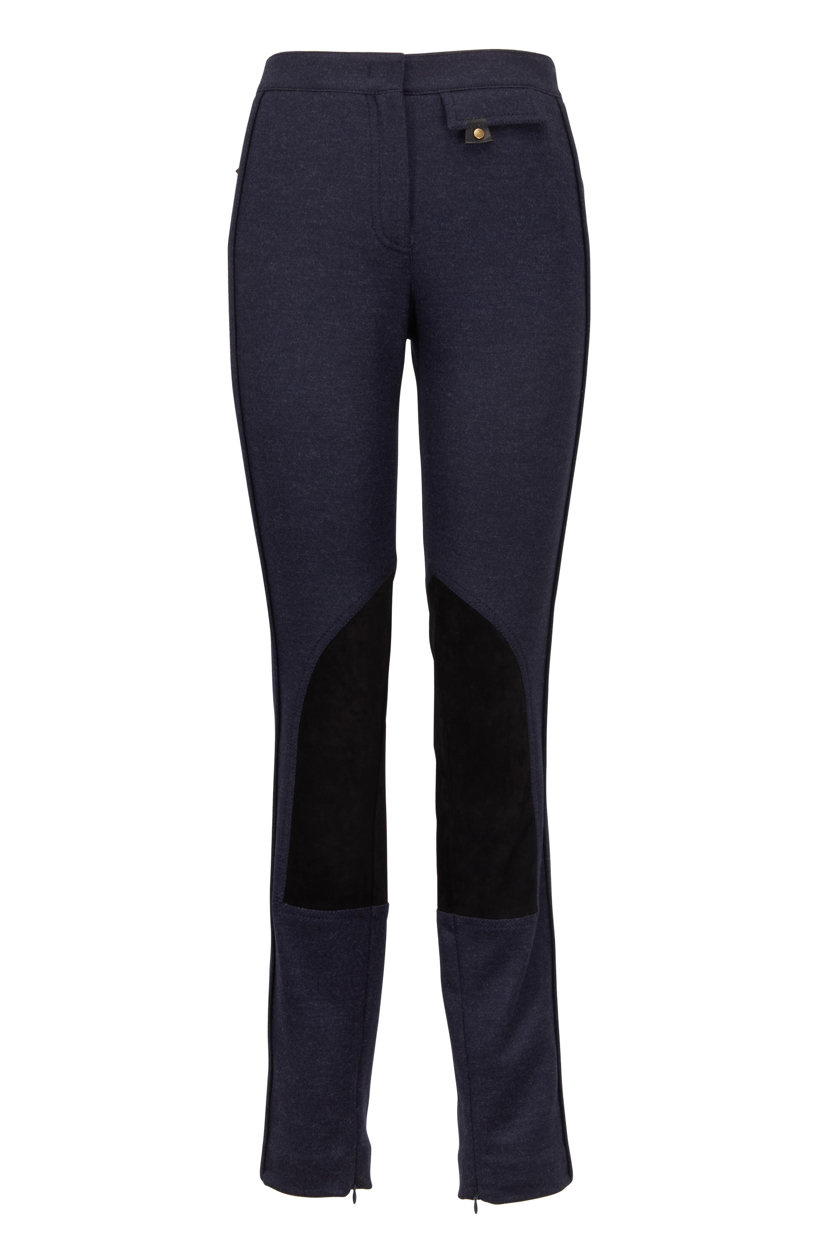 Banded waist. Flap coin pocket, back zip pockets. Zip cuffs. Leather and suede trim. Imported. 62% wool, 34% polyamide, 4% elastane; trim 1: 100% calfskin; trim 2: 100% lamskin. Dry clean.