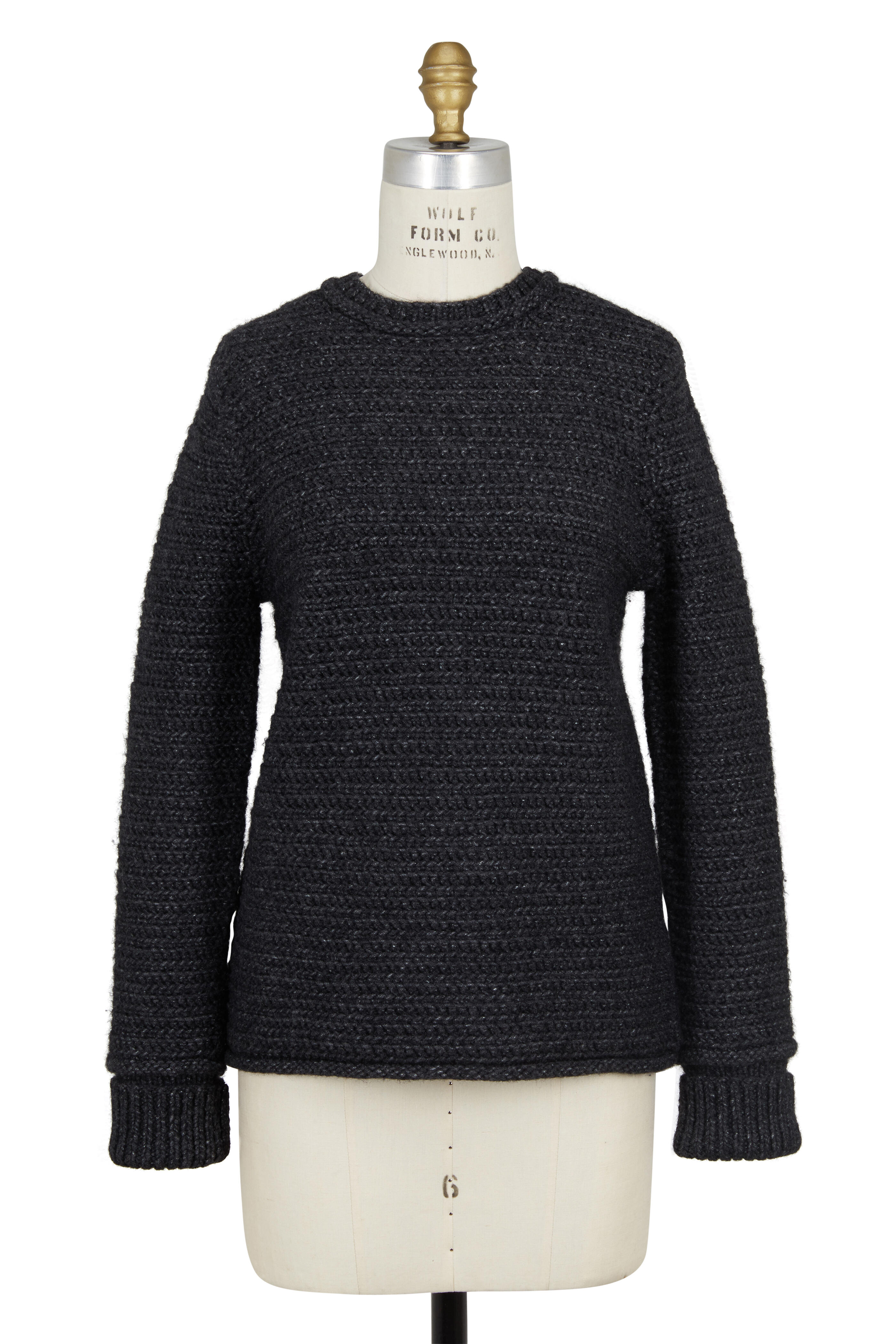 Anthracite Tunisian Crochet Knit Crewneck Sweater