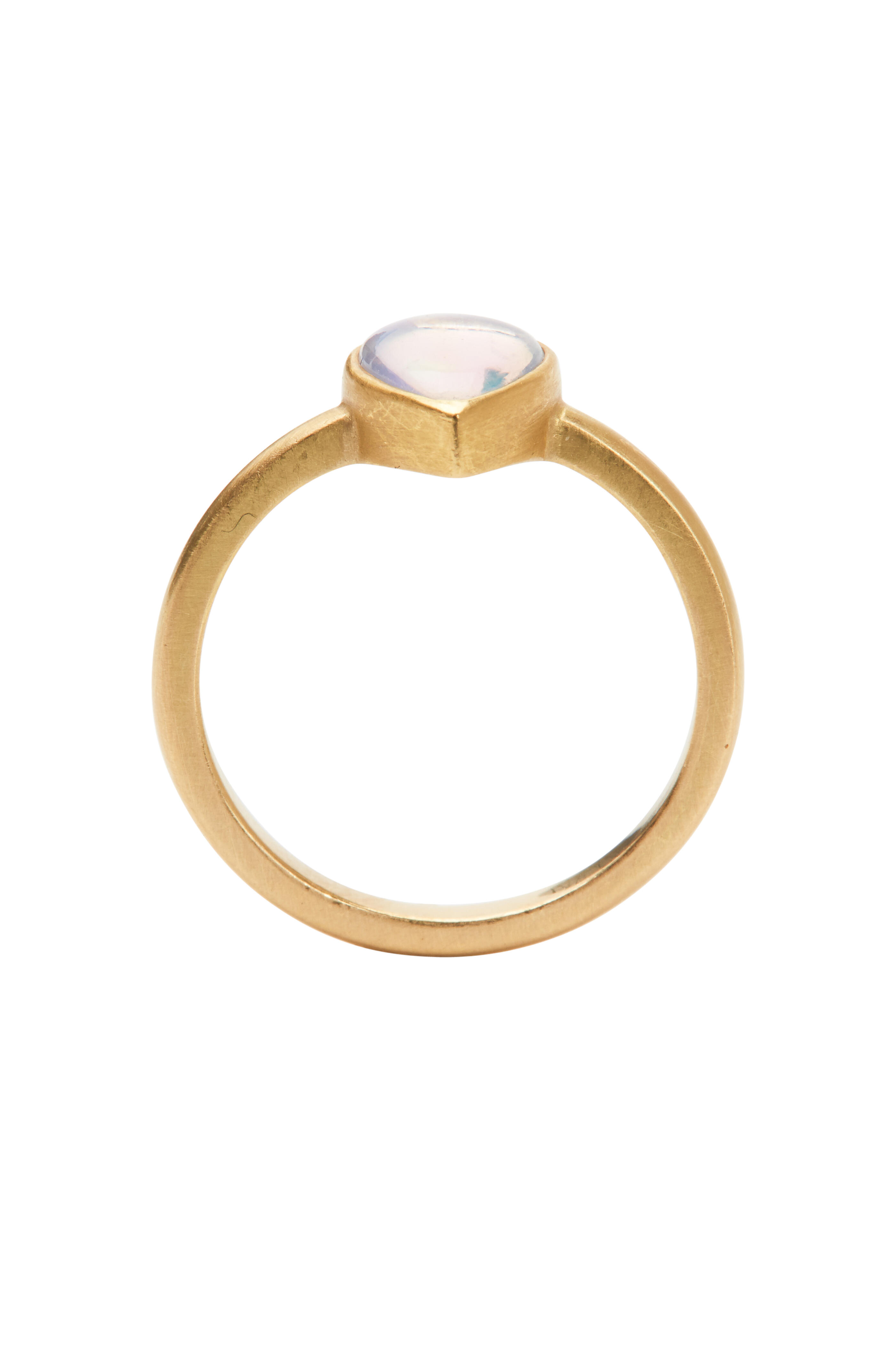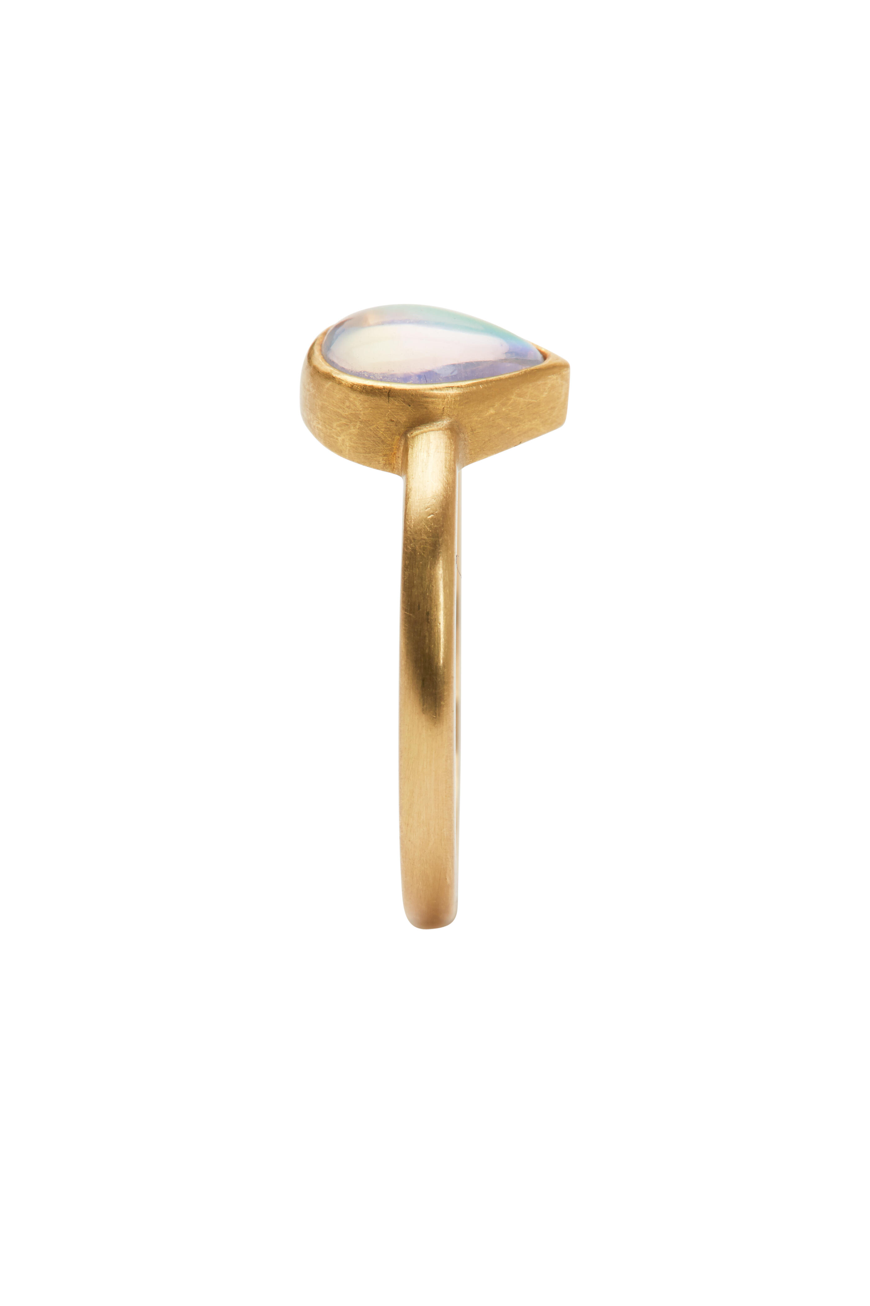 20K yellow gold band; 22K yellow gold bezel. Bezel-set teardrop water opal.