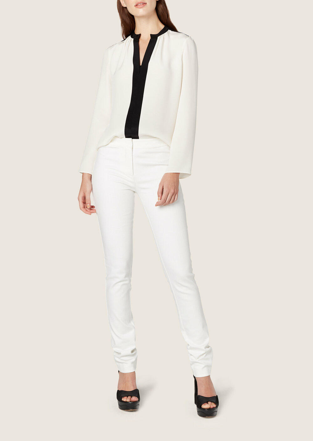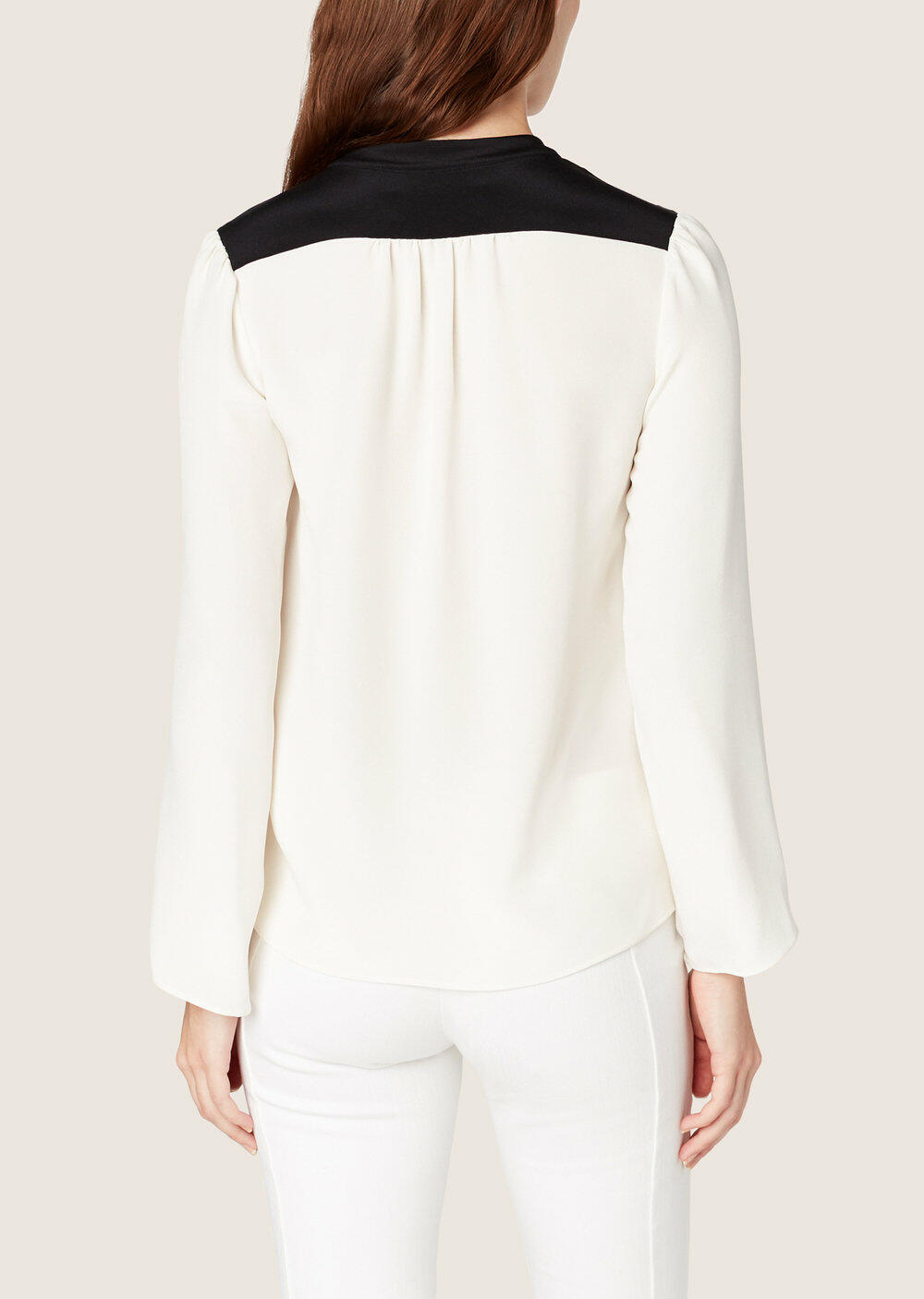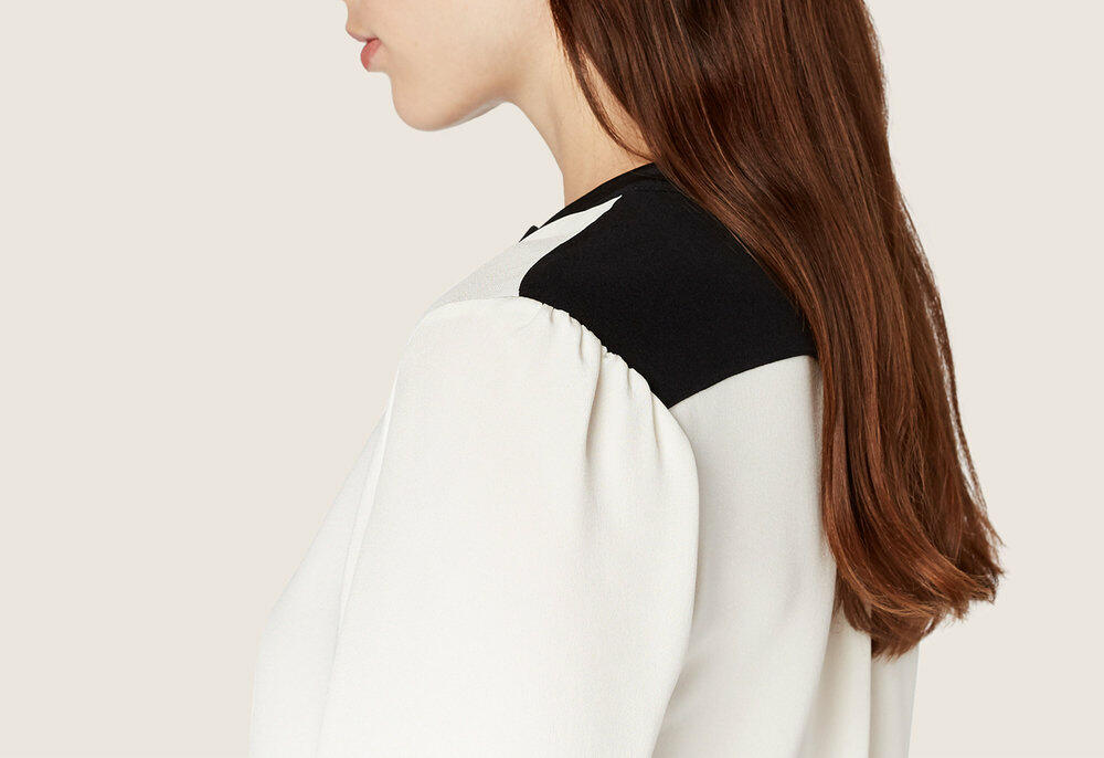 Ivory & Black Silk Nehru Collar Blouse