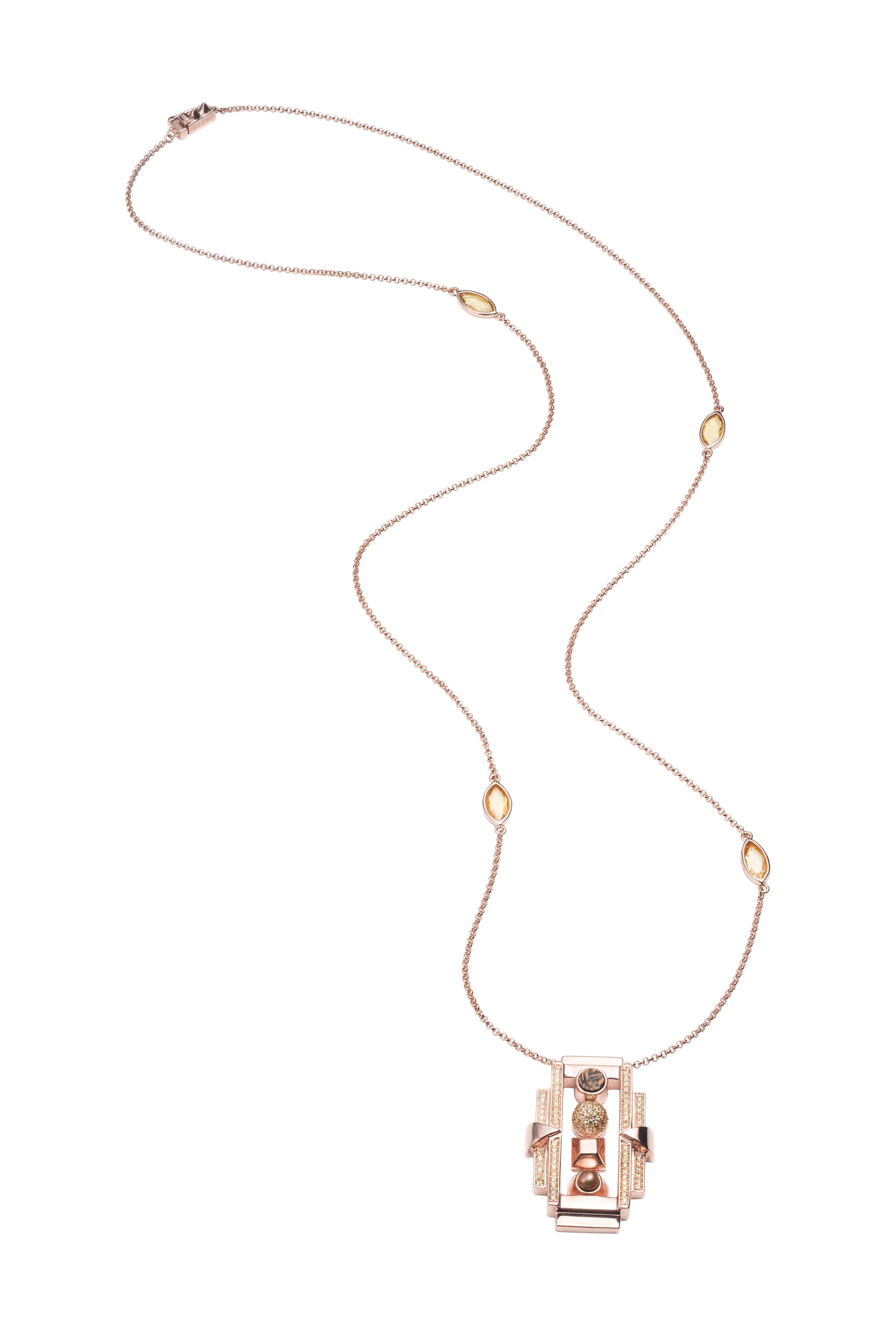 Brass plated rose gold. Cubic zirconia. 34.5"L.