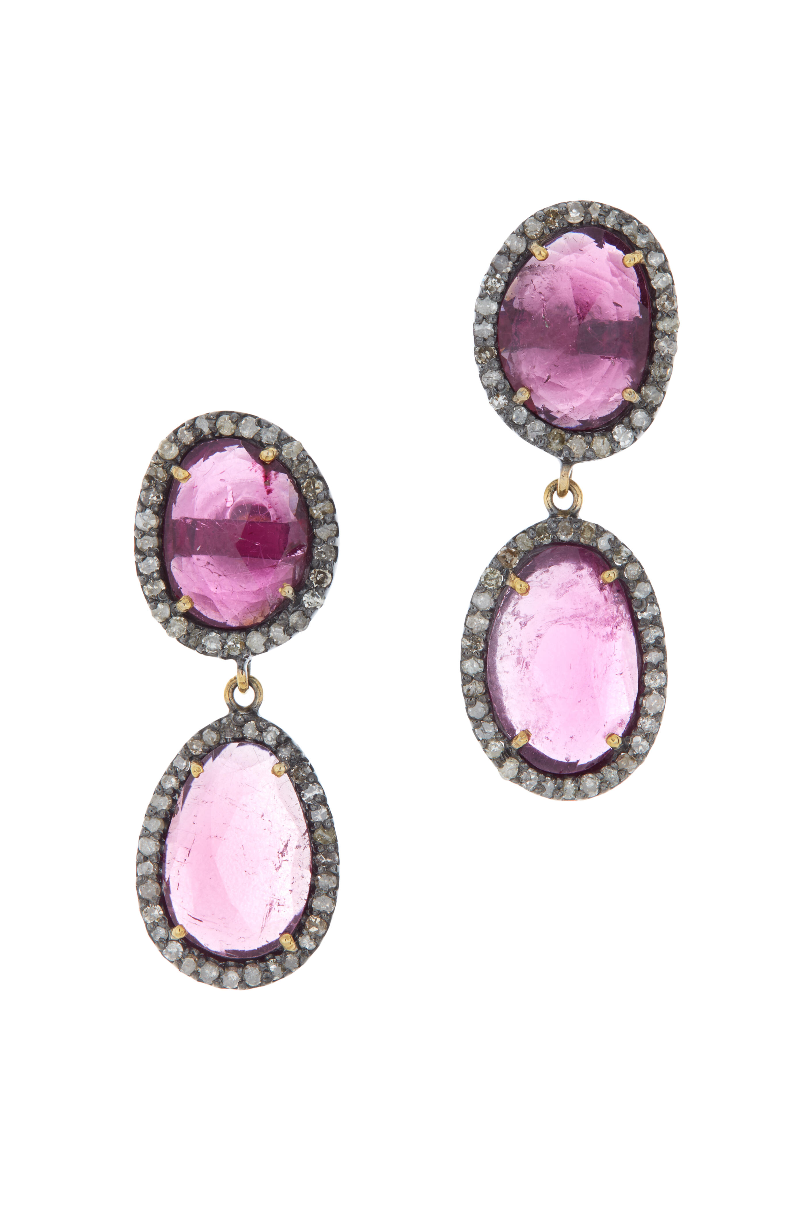 Silver Pink Tourmaline Diamond Dangle Earrings