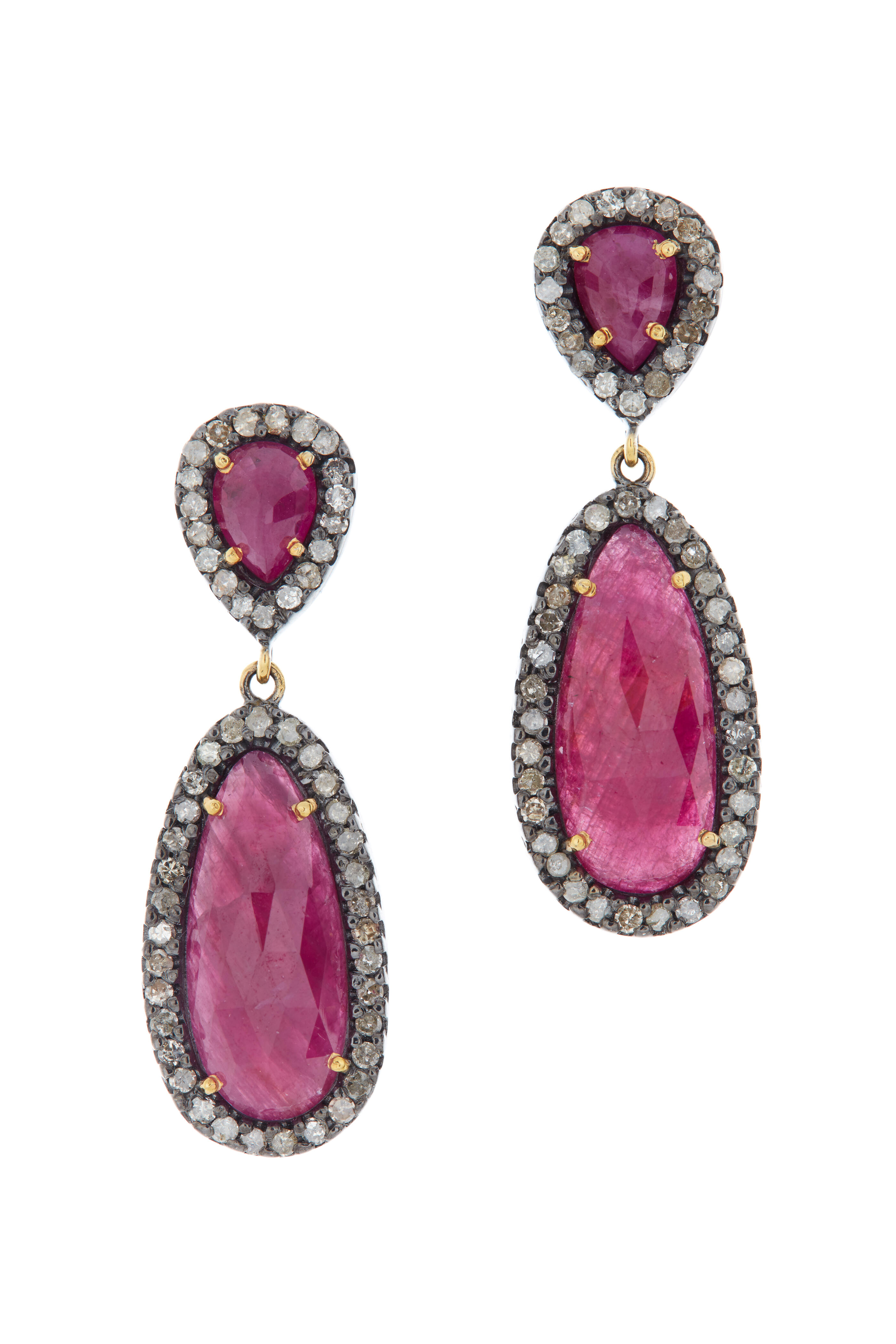 Sterling Silver Tourmaline Diamond Drop Earrings
