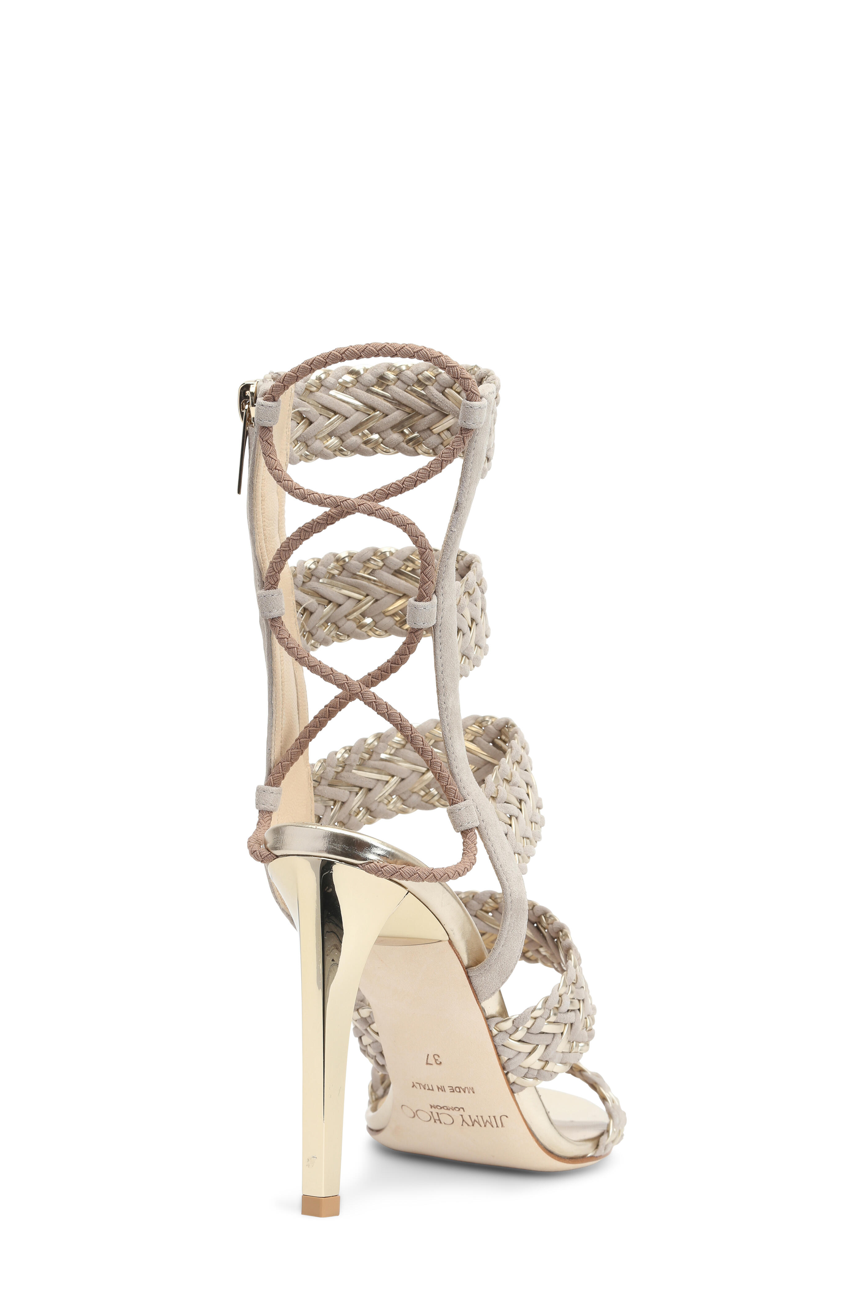 Lima Nude Suede & Leather Braided Sandal, 100mm