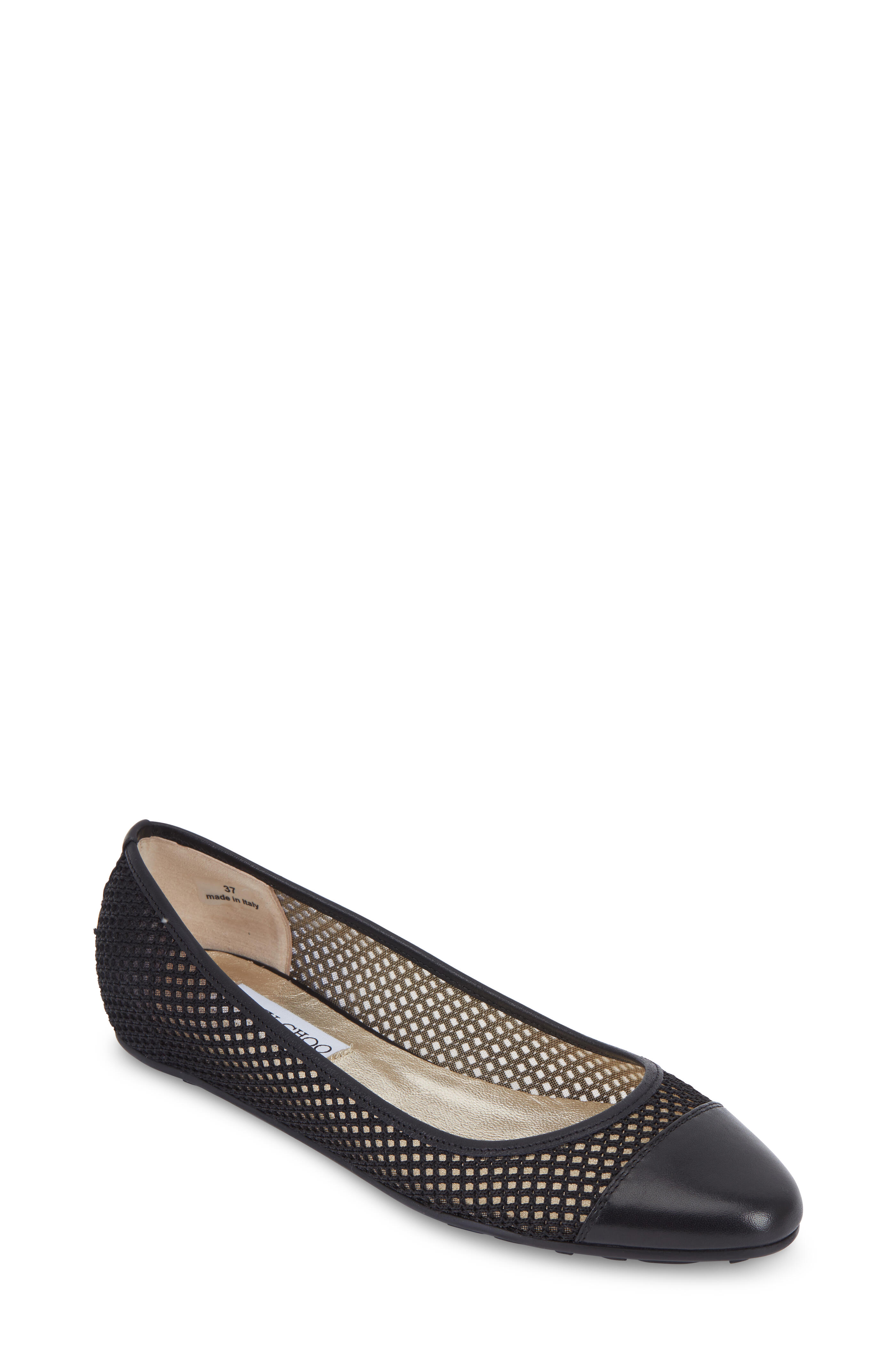 Waine Black Leather & Mesh Ballet Flat