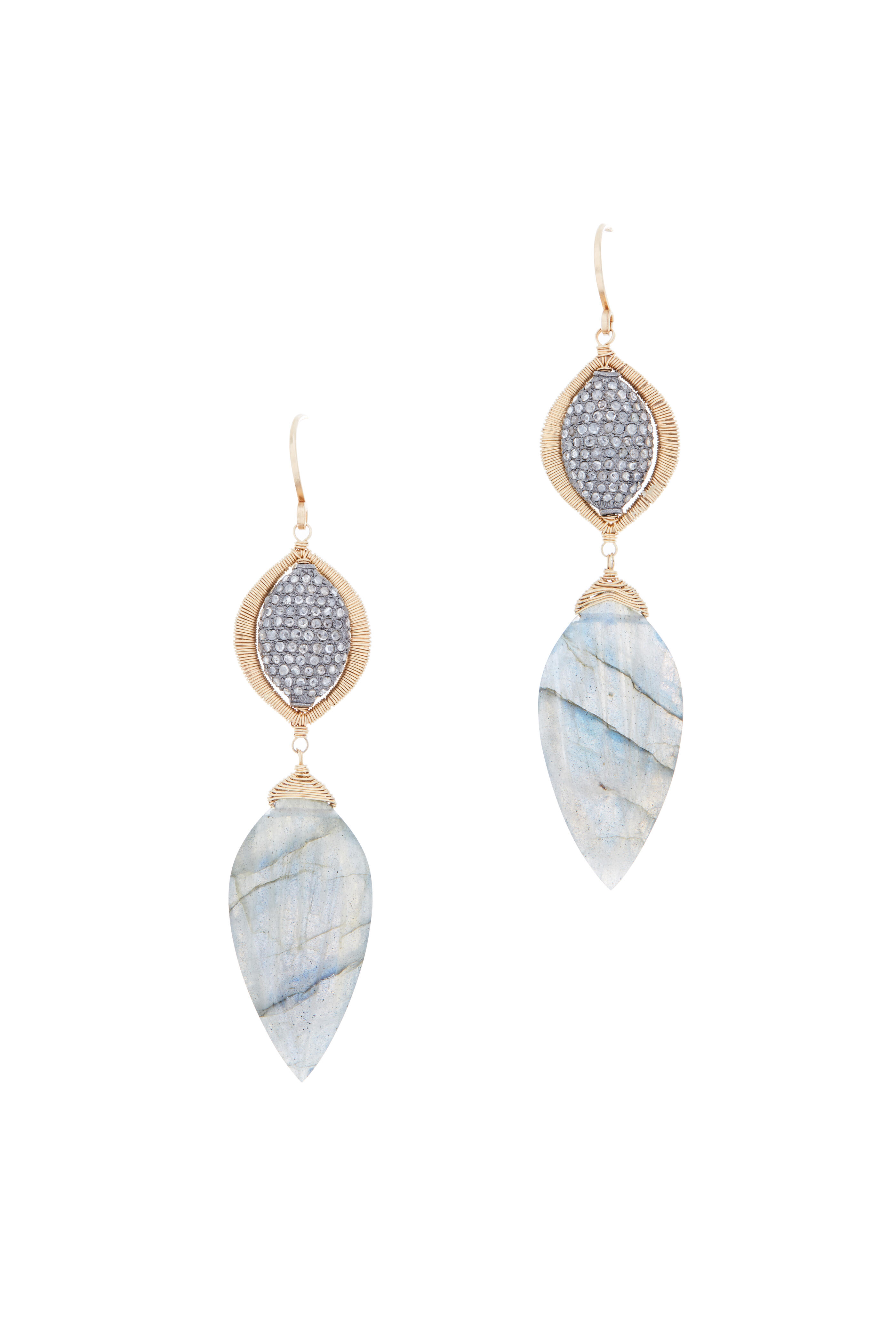 14K Gold Labradorite & Pavé Diamond Drop Earrings