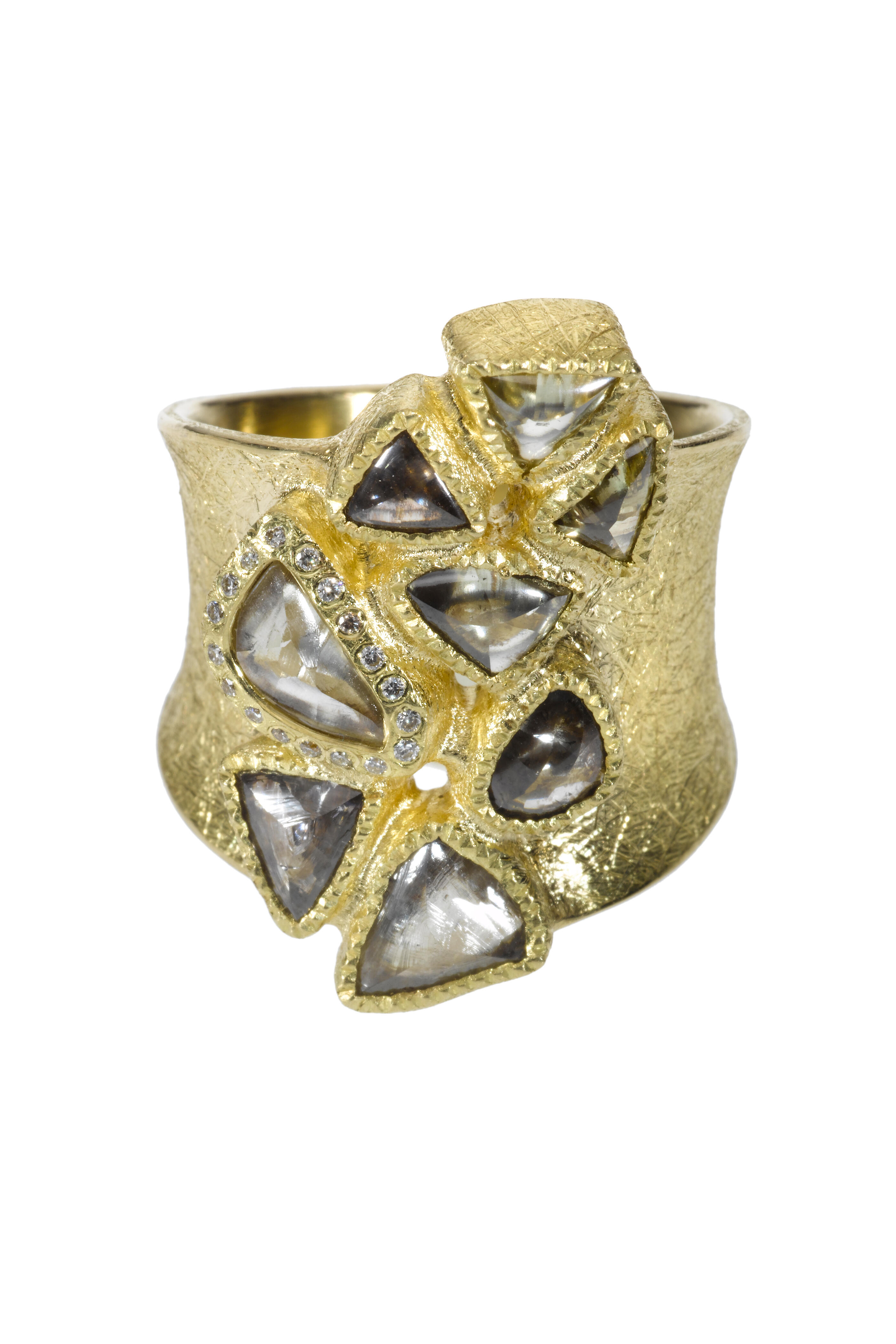18k yellow gold. 5.81cts diamond macles. 0.738cts round, brilliant-cut white diamonds.