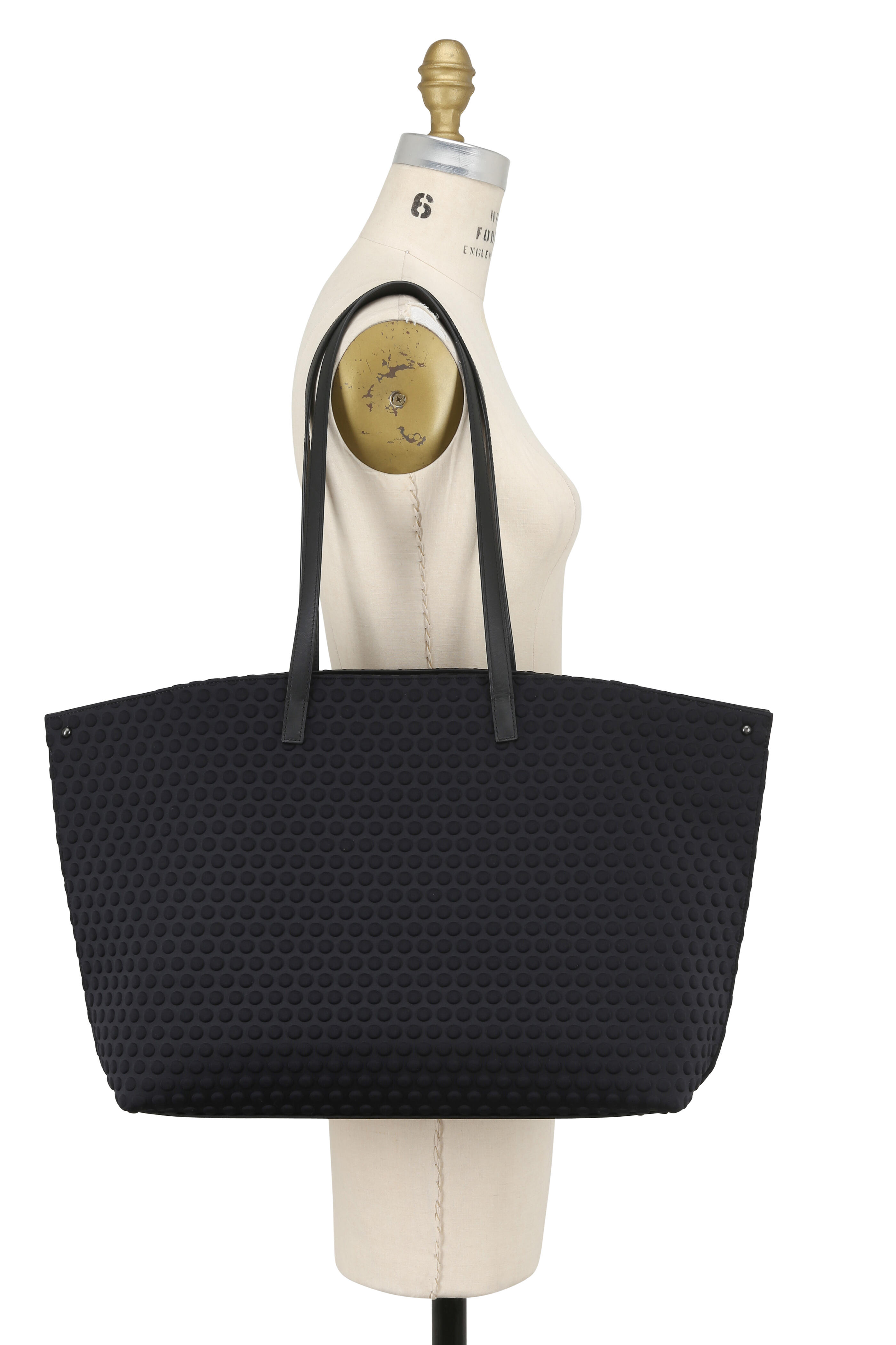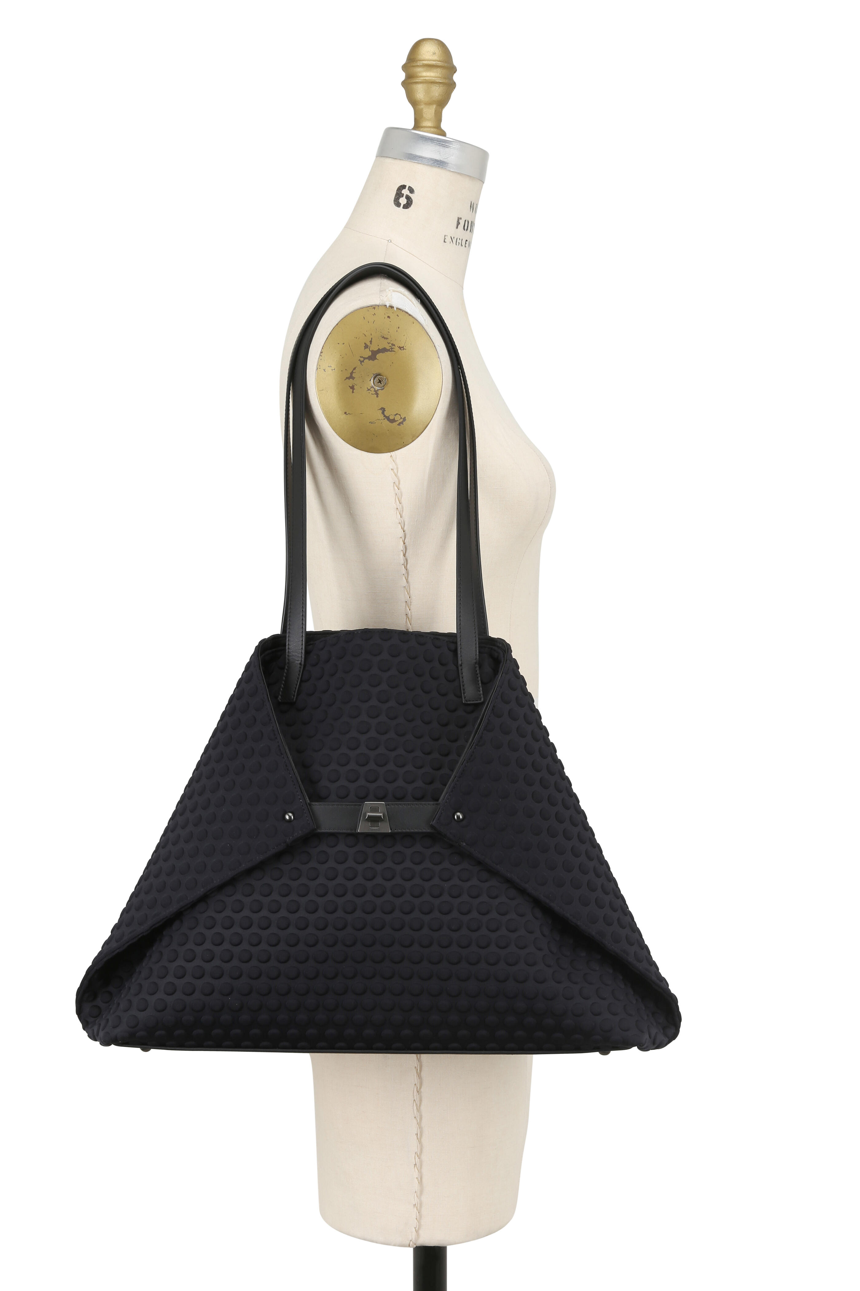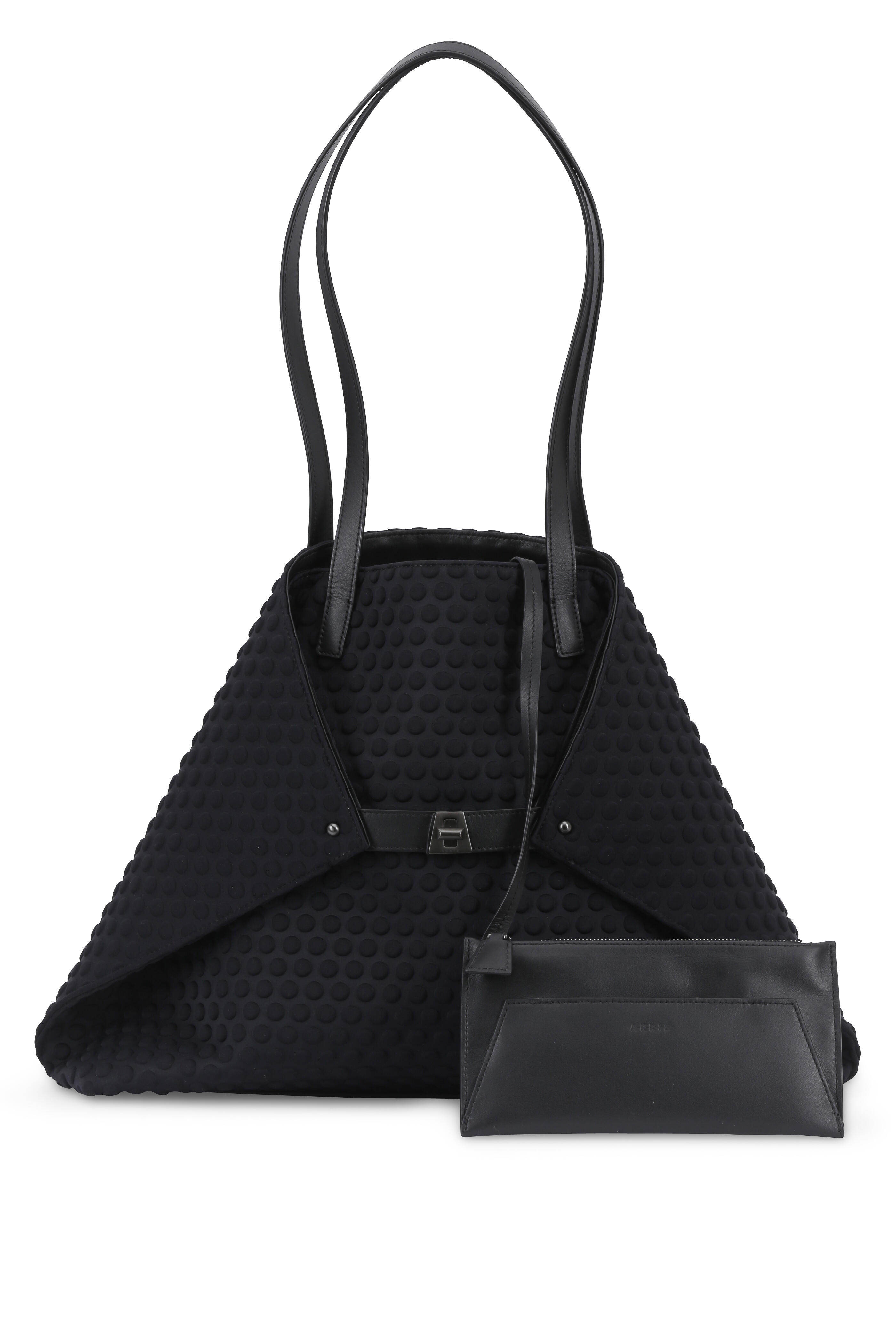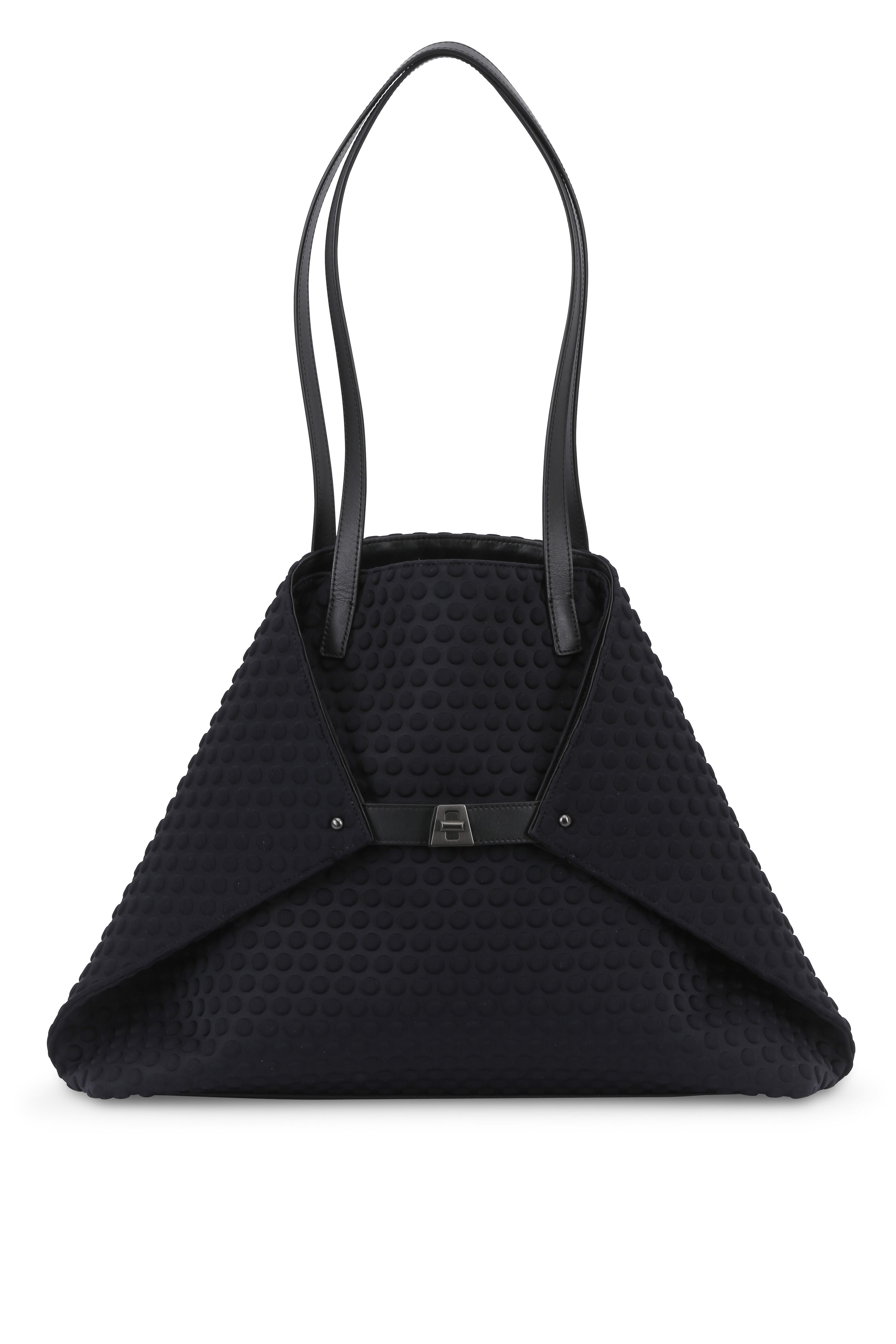 Ai Black Dot Textured Nylon Medium Shoulder Tote