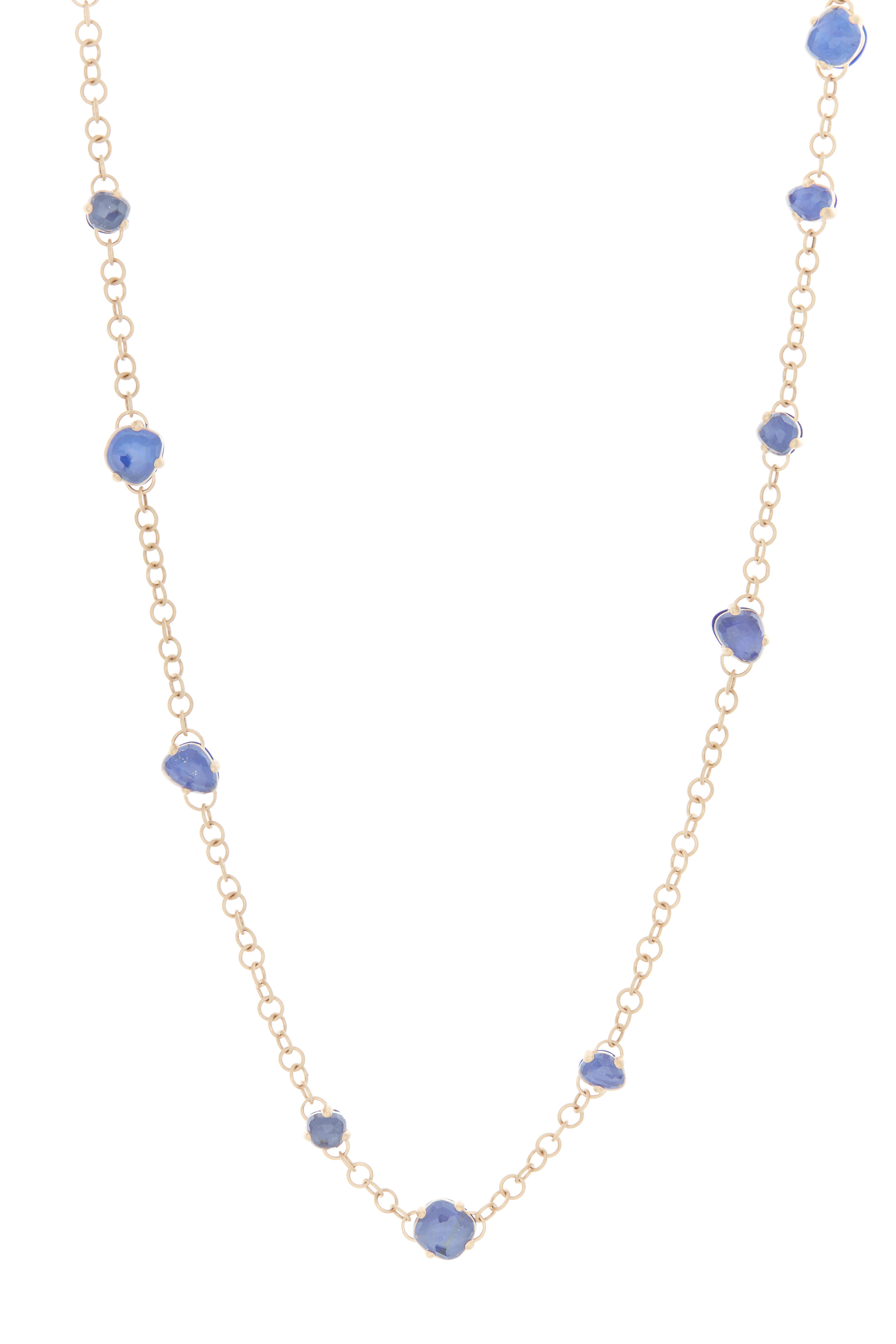 From the Capri collection. 18k pink gold. Rock crystals. Lapis gemstones. 64cm necklace.