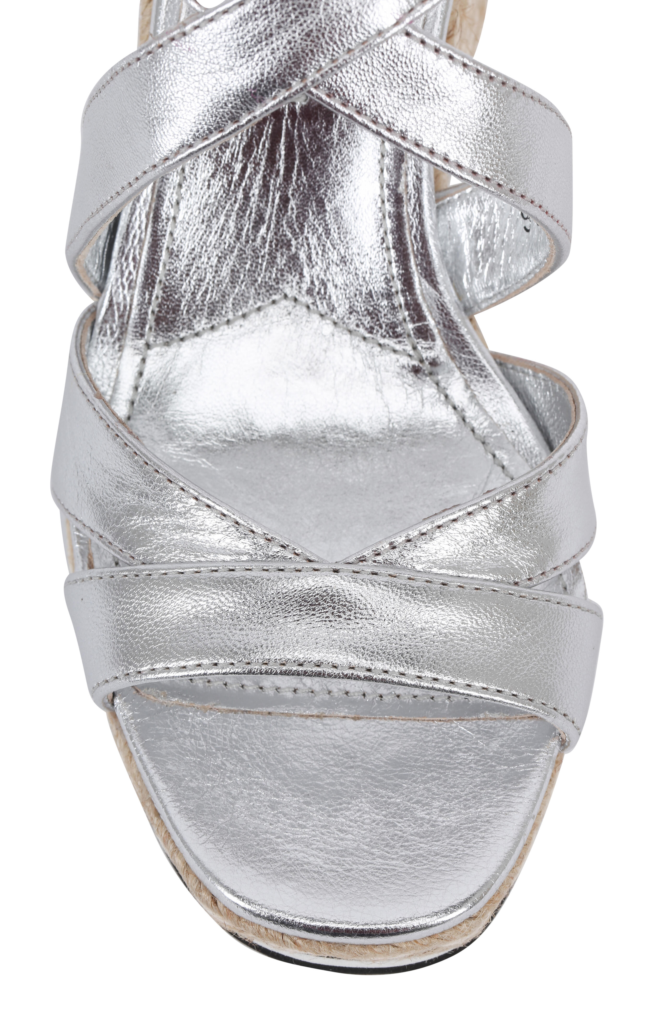 Metallic Silver Leather Wedge Espadrille, 110mm