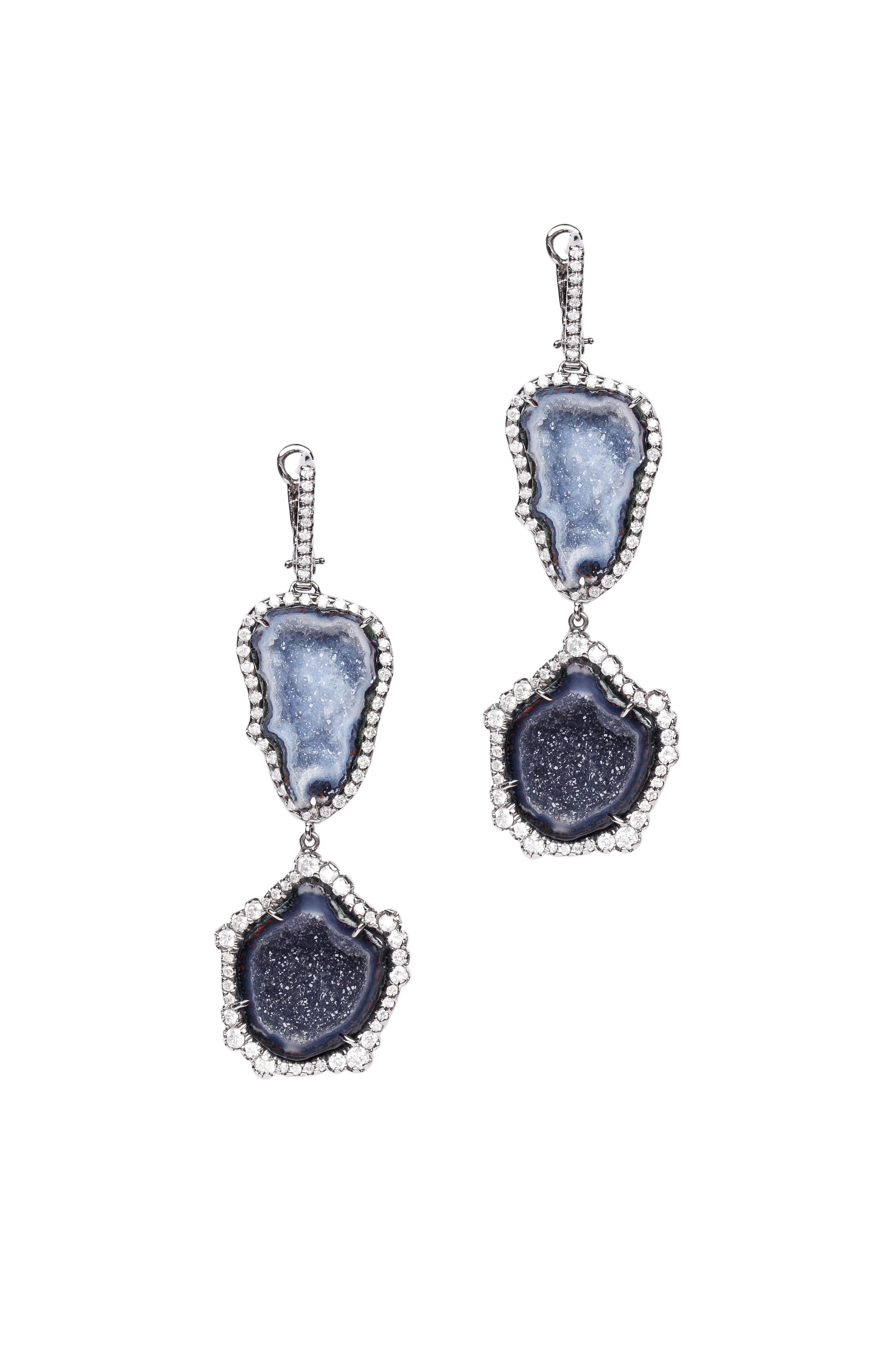 18K white gold. Black geodes. Blue geodes. Diamonds, 2.9 total carat weight.